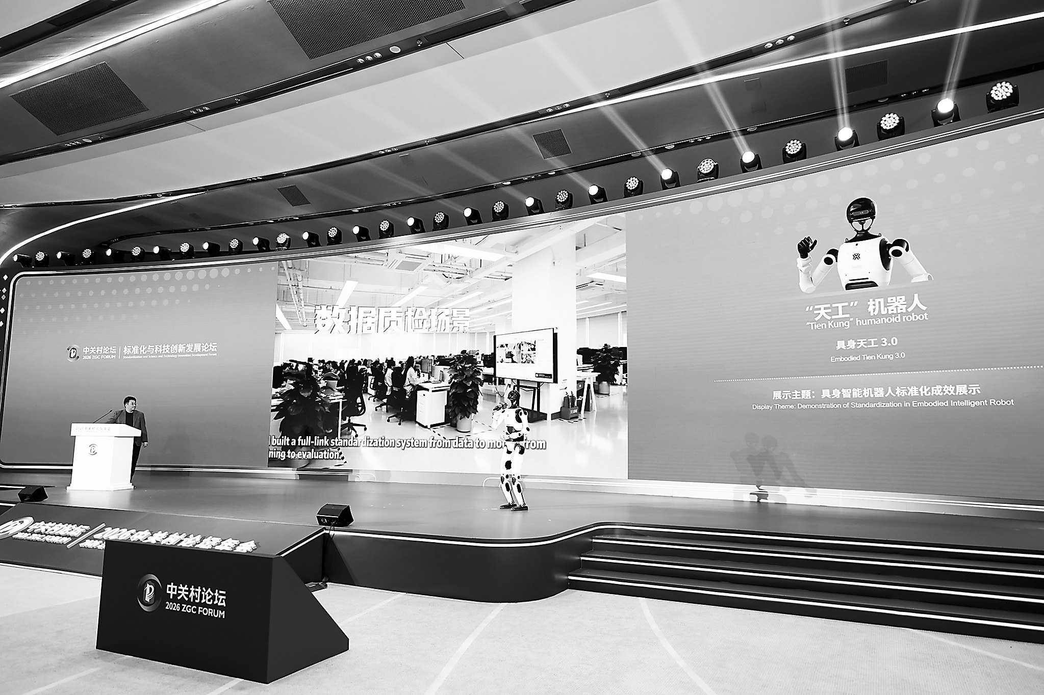 3月26日,在2026中关村论坛期间举办的标准化与科技创新发展论坛现场,一位新晋世界“百米飞人”——具身智能机器人“天工3.0”走到台前,手持话筒用中英文讲述自己在2025世界人形机器人运动会的夺冠之路。这一场景成为当前我国科技创新与标准化融合的生动注脚。