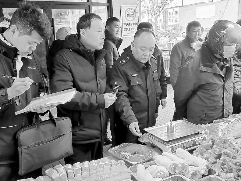 春节临近,江苏省淮安市市场监管局工作人员与消费者一道深入商超、水产市场,对电子计价秤进行现场检查。 □刘广波/摄