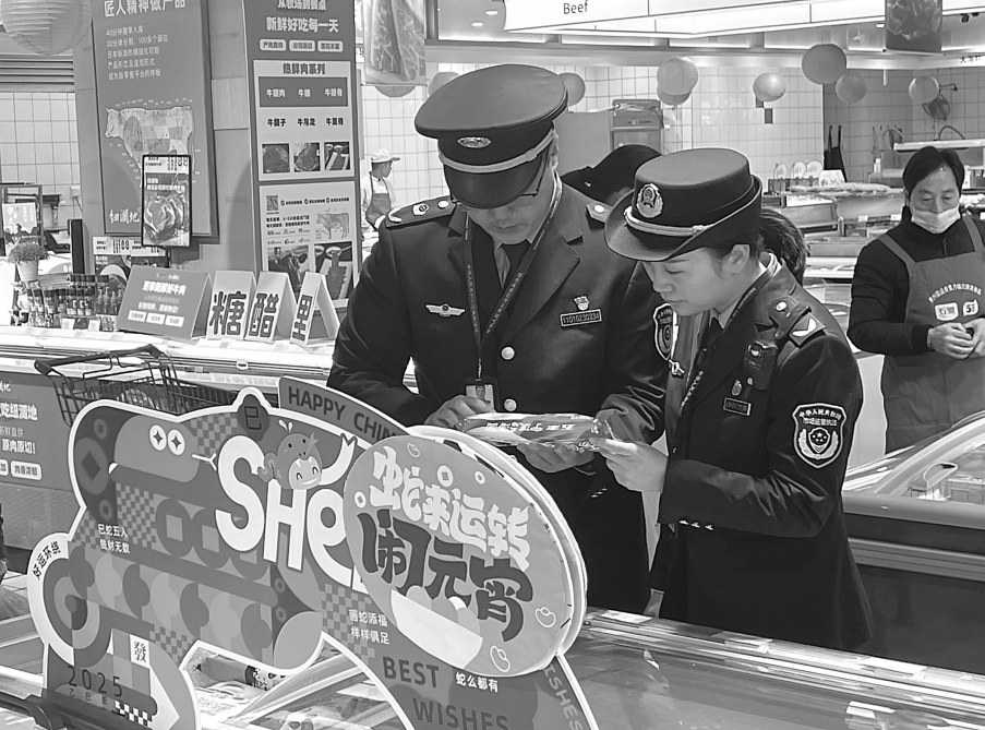 近日,浙江省杭州市拱墅区市场监管局开展元宵节令食品专项检查和抽检,加大节令食品监管力度,督促经营者落实主体责任,确保相关食品符合安全标准和要求,守护群众“舌尖上的安全”,营造安全放心的节日食品消费环境。图为2月10日,该局执法人员在超市检查元宵节令食品。