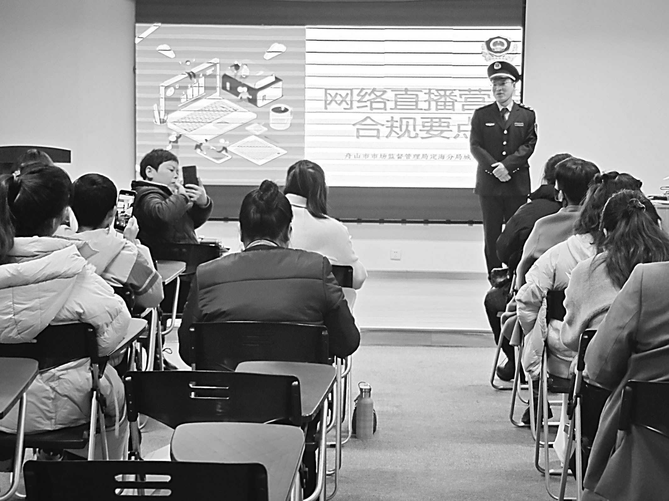 为进一步增强网络直播行业经营主体守法意识和主体责任意识,近期,浙江省舟山市市场监管局聚焦网络直播这一新兴业态群体,印制《网络直播合规指引》,开设直播“夜校”,积极培育建设“绿色直播间”。《网络直播合规指引》涵盖对平台内经营者和主播的规范要求,商品的禁售、慎售目录及标签规范等相关要求,对广告中的禁限性行为、用语,以及常见的违法违规行为进行了解读。 □张 恒/摄