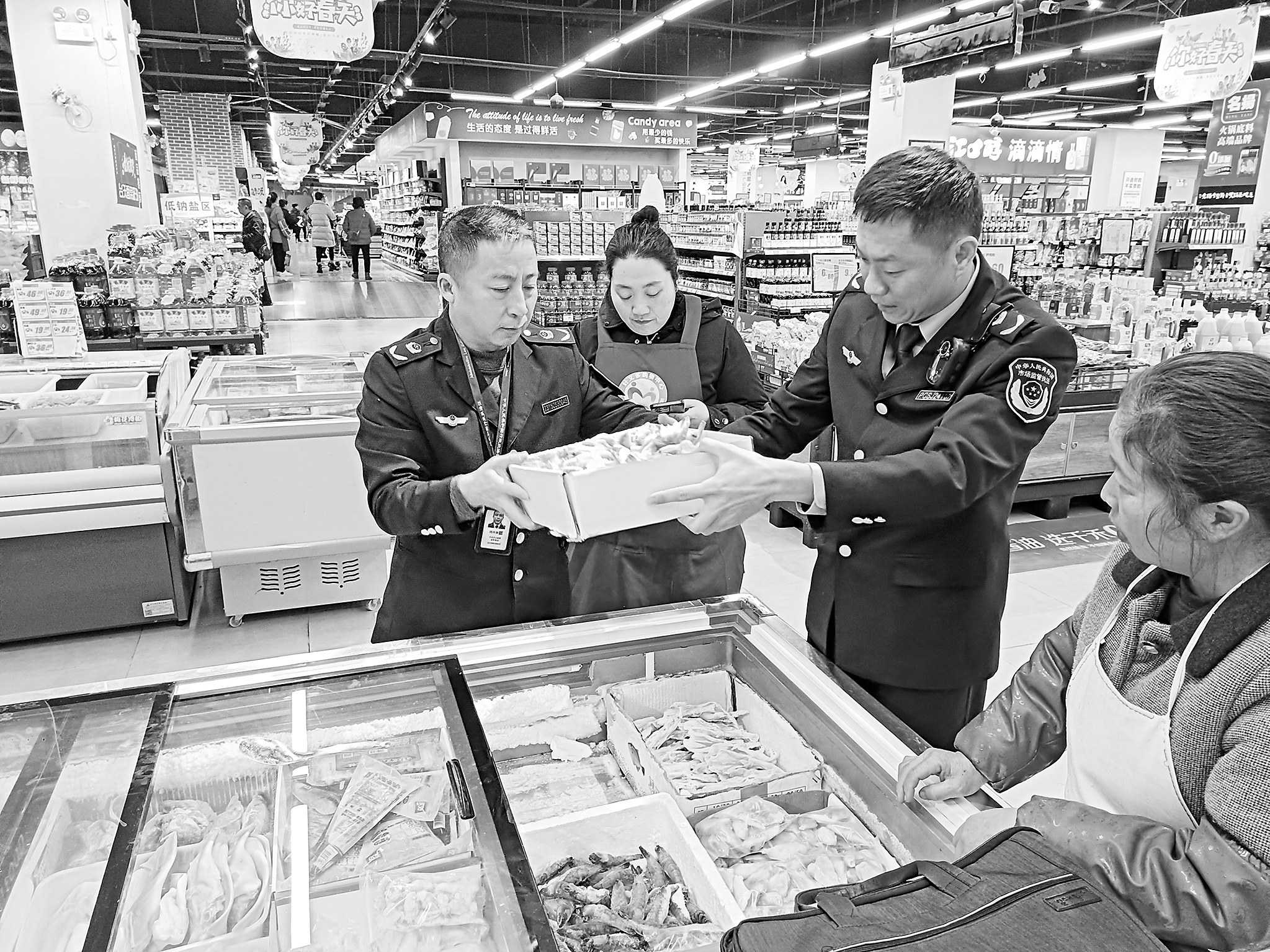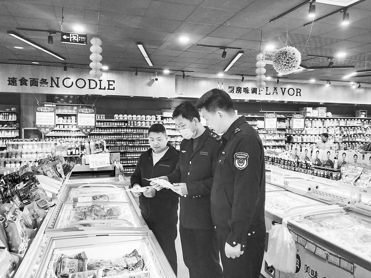 3月16日,四川省巴中市平昌县市场监管局启动“护民生、促消费”专项行动,以“云端+实地”双轨作战模式,重点排查各大型超市“增重”虾仁问题产品。 □彭 庄/摄