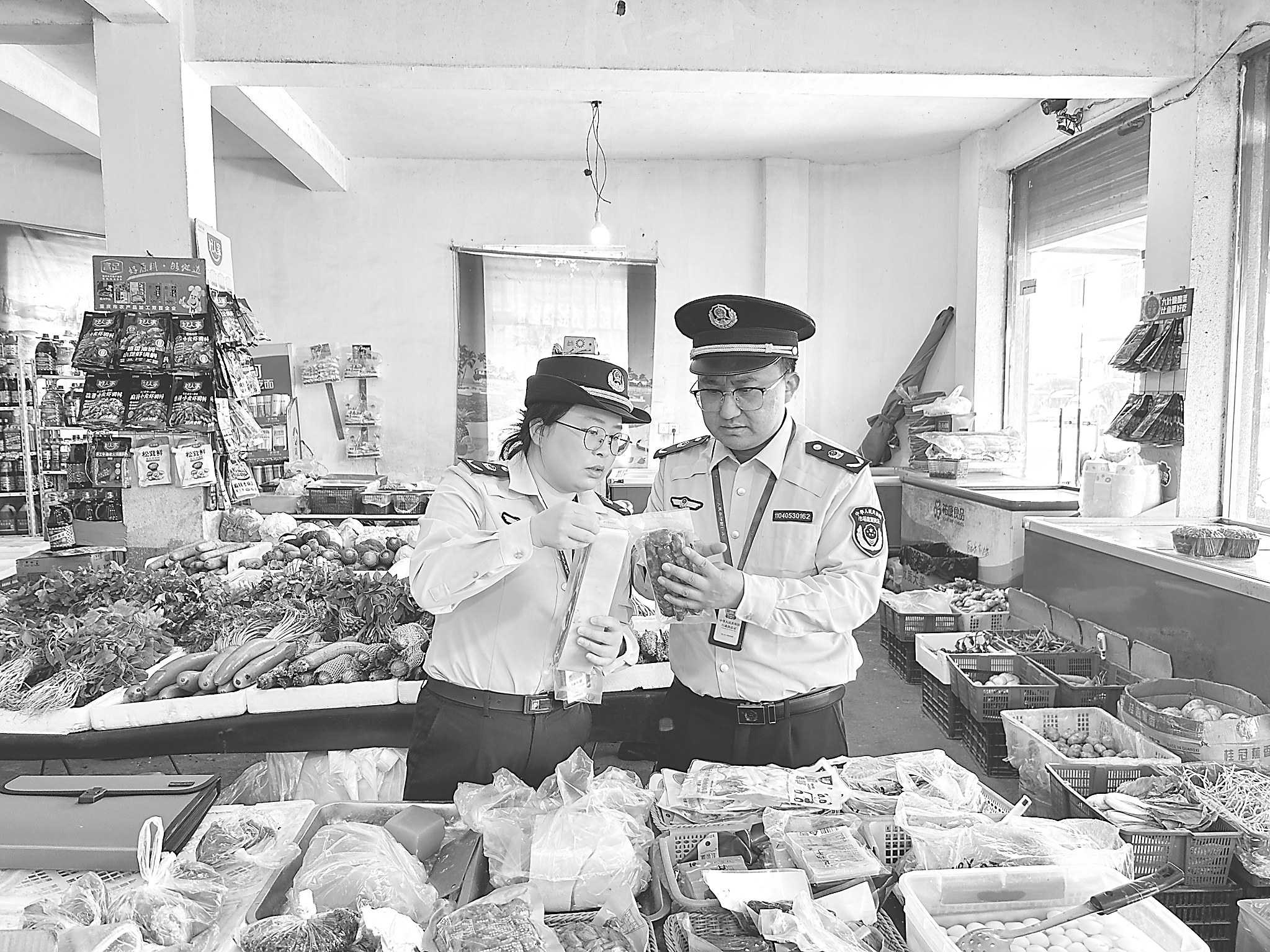近日,浙江省安吉县市场监管局上墅市场监管所组织开展农村假冒伪劣食品检查,重点检查是否存在未按规定储存食品以及销售过期食品的行为,督促经营者强化主体责任落实,切实保障农村消费者合法权益。图为执法人员在一家食杂店检查。 □方丽萍/摄