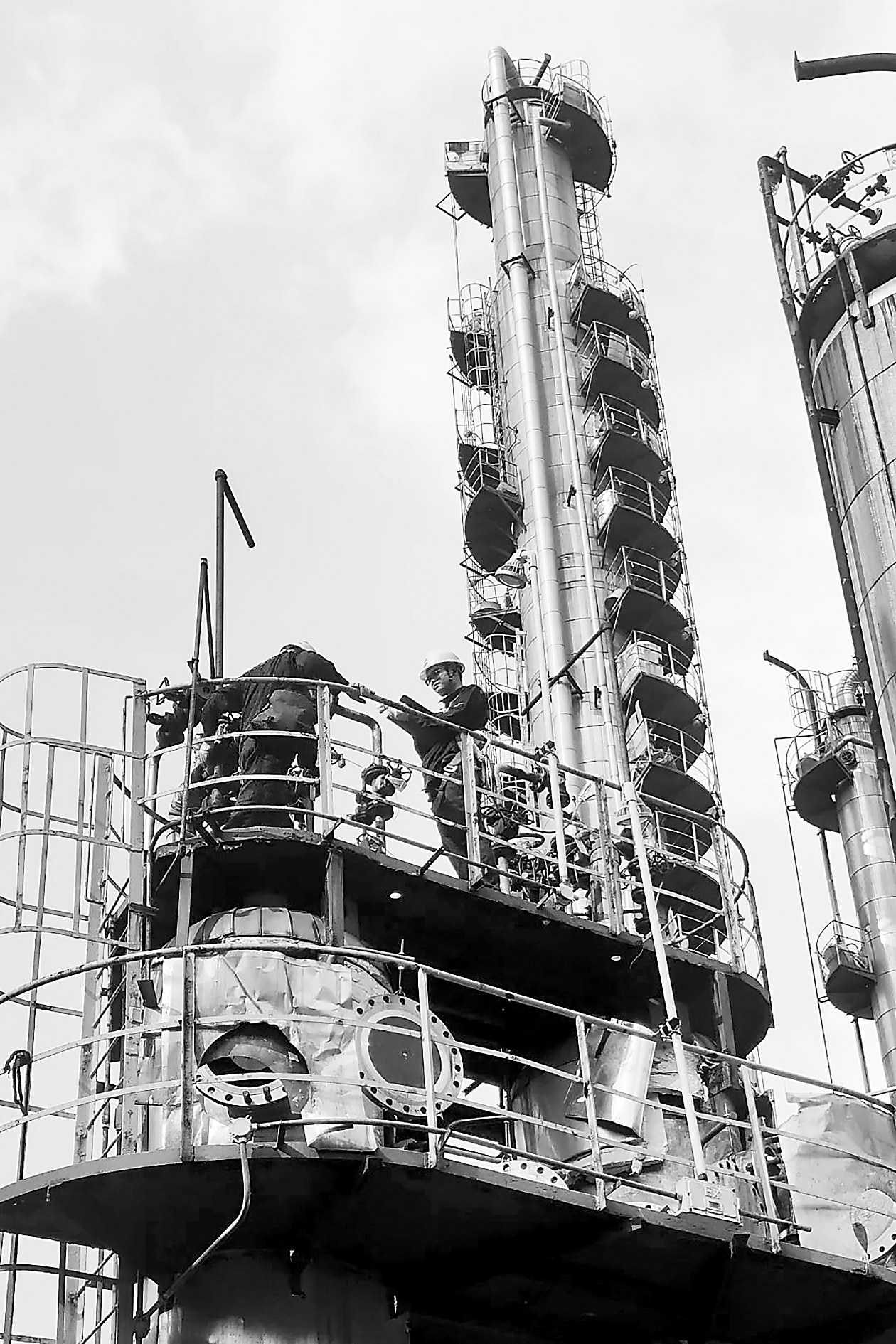 近日,中石化湖南石化炼油部甲基叔丁醚(MTBE)装置进入年度大检修阶段。湖南省特检院岳阳分院勇战高温酷暑,确保各项工作高效有序进行。大家背着检验仪器设备,穿行在280余台压力容器间,时而攀爬在60米高的塔架之上,时而在蒸笼般的容器内精准测量,检验服被汗水浸透又风干,布满灰尘与盐渍,但他们始终以严谨的态度、专业的技术和高效的执行力,为石化装置安全运行提供坚实保障,展现了特检人的责任担当。 □王锡洋/摄