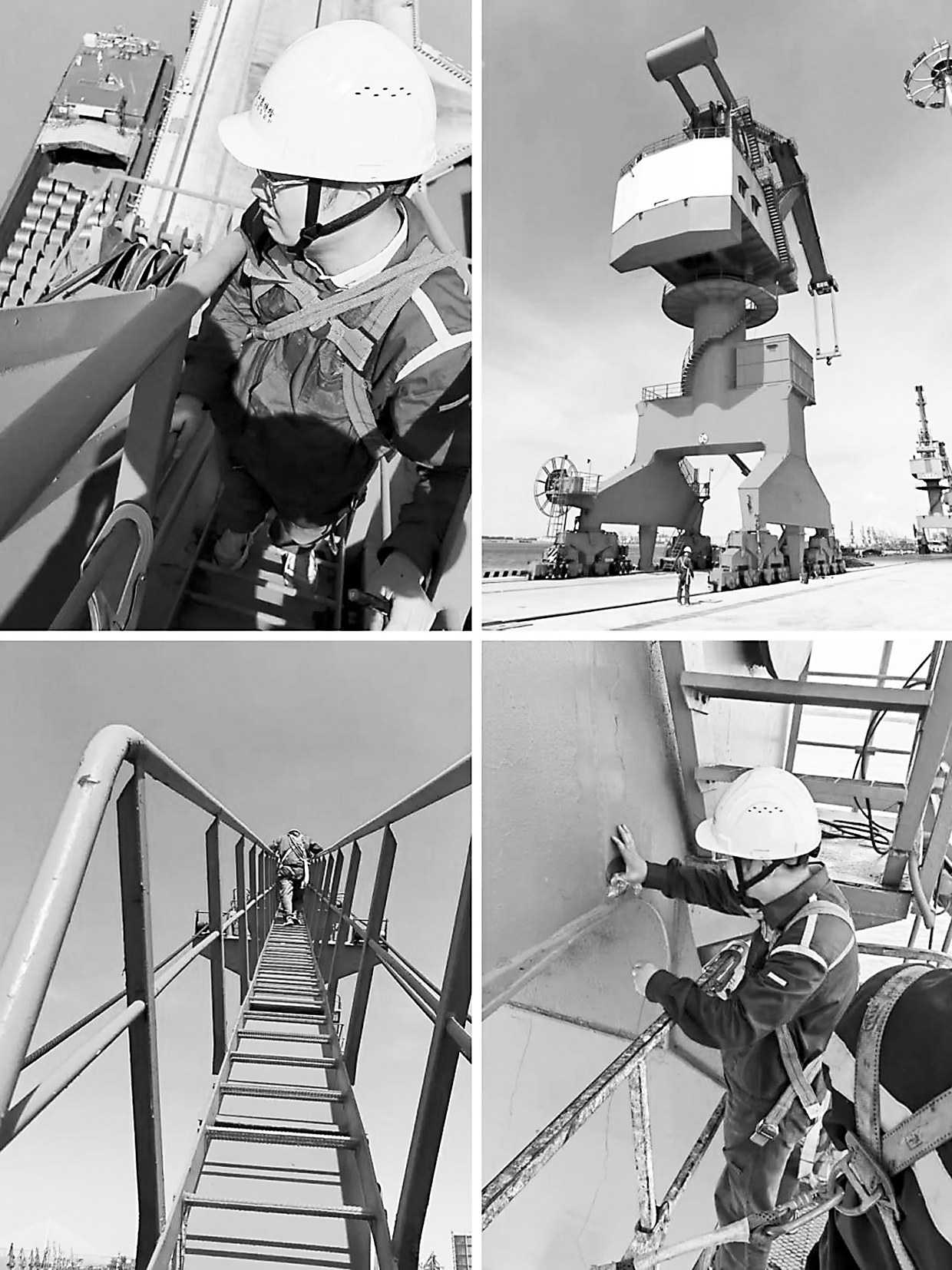 江苏省特检院张家港分院检验员登上40米高的起重设备,直面烈日炙烤,为沙钢海力码头一台门座式起重机改造工程开展应力应变检测,通过实时数据验证设备安全性和可靠性。 □王 栓/摄