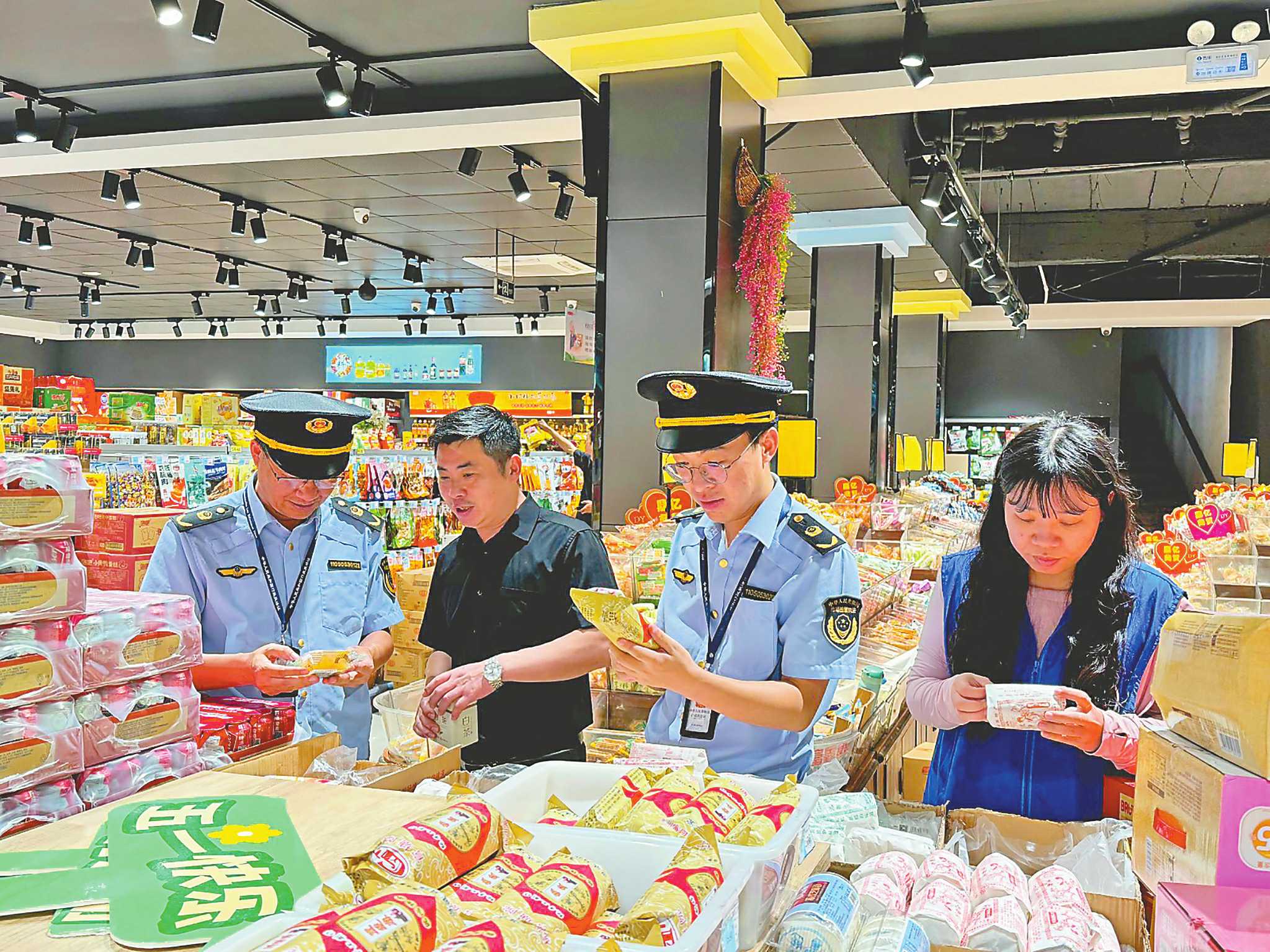 近日,浙江省海盐县市场监管局联合相关单位对辖区商超开展食品经营指导工作,督促商家严格落实食品安全主体责任,进一步加强食品安全监管,保障居民的消费安全。 □朱榴艳 陈浩敏/摄影报道