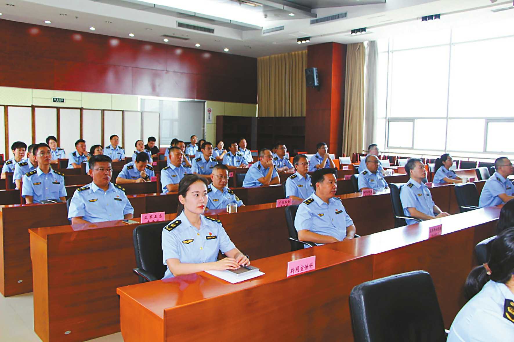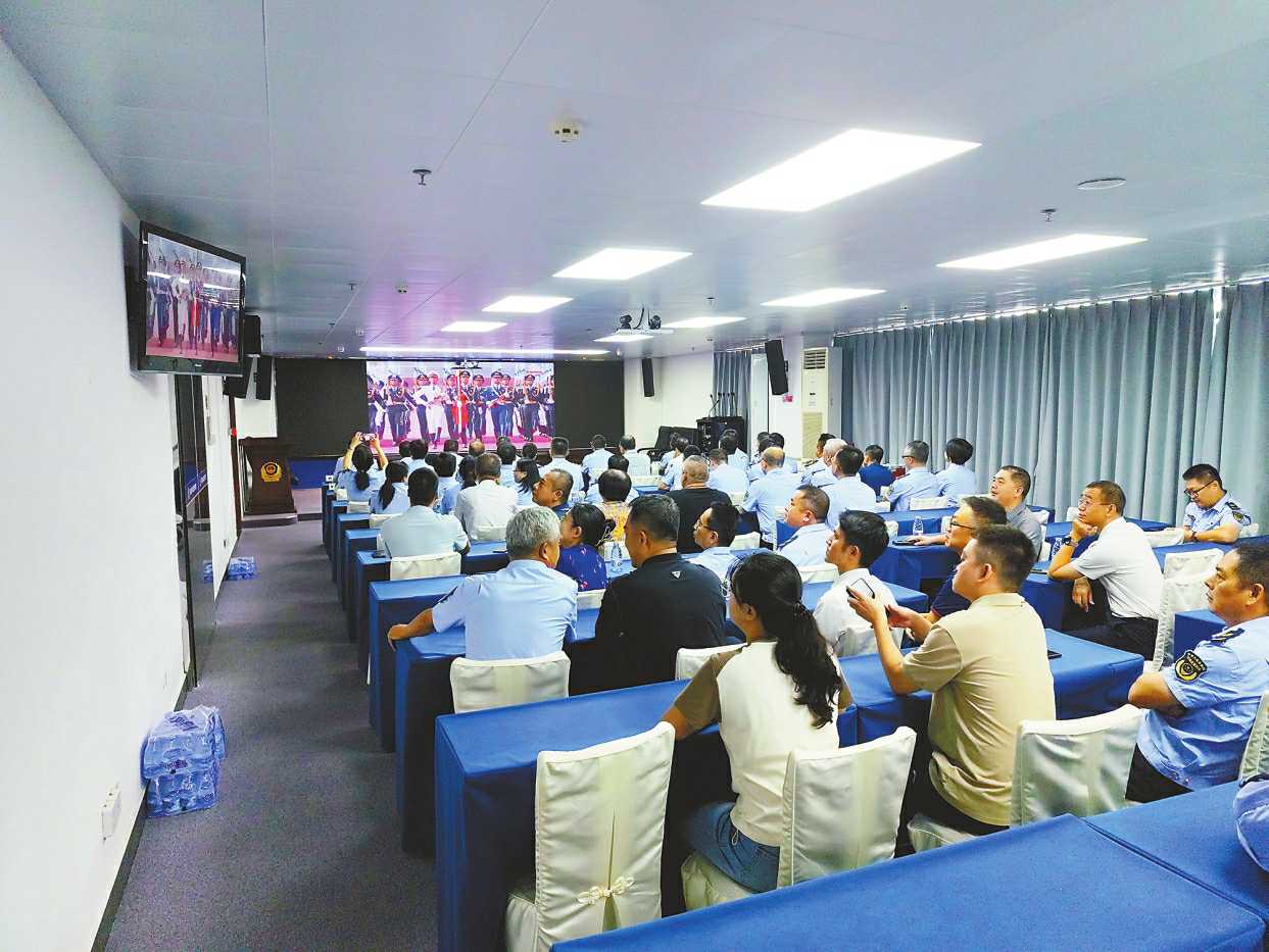 9月3日,海南省市场监管局组织干部职工集中收看纪念中国人民抗日战争暨世界反法西斯战争胜利80周年大会盛况电视直播。 □琼市监/摄