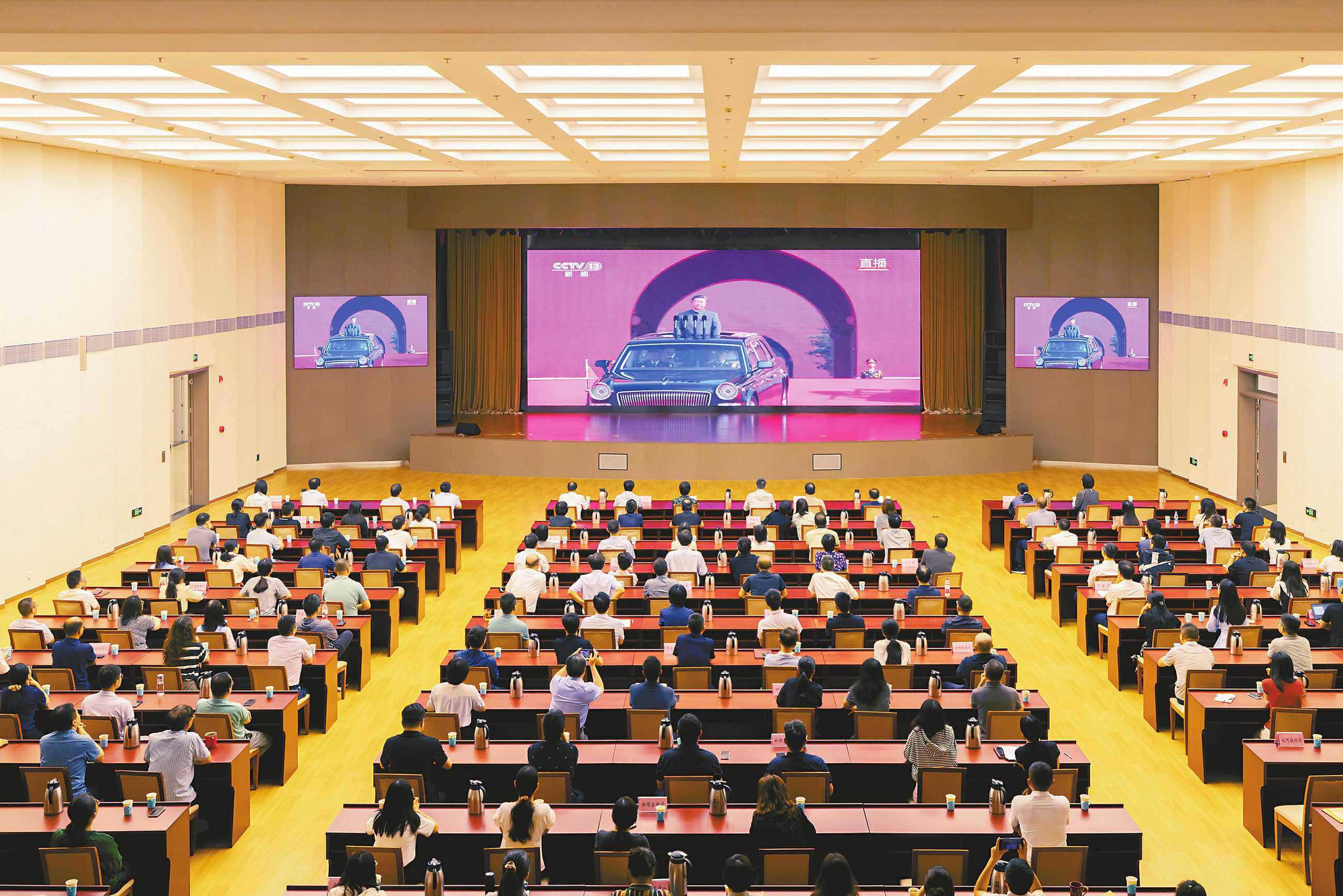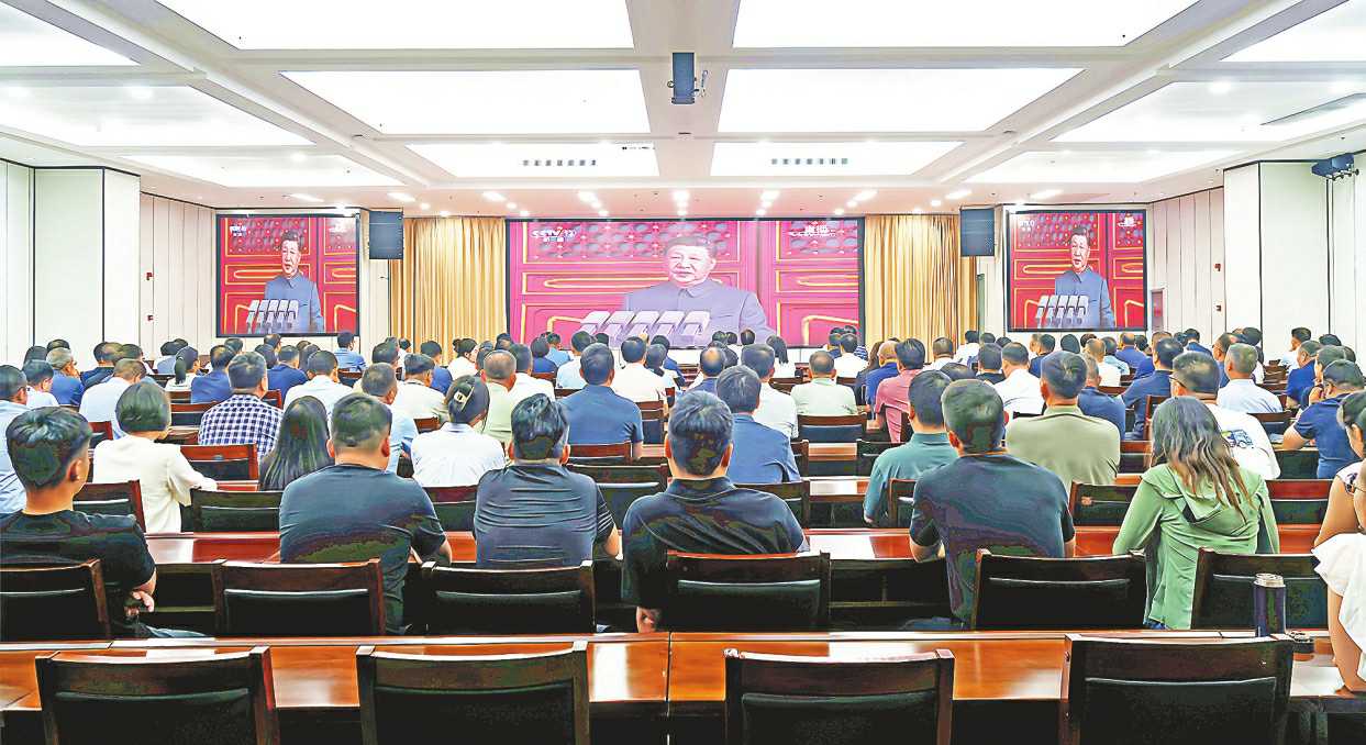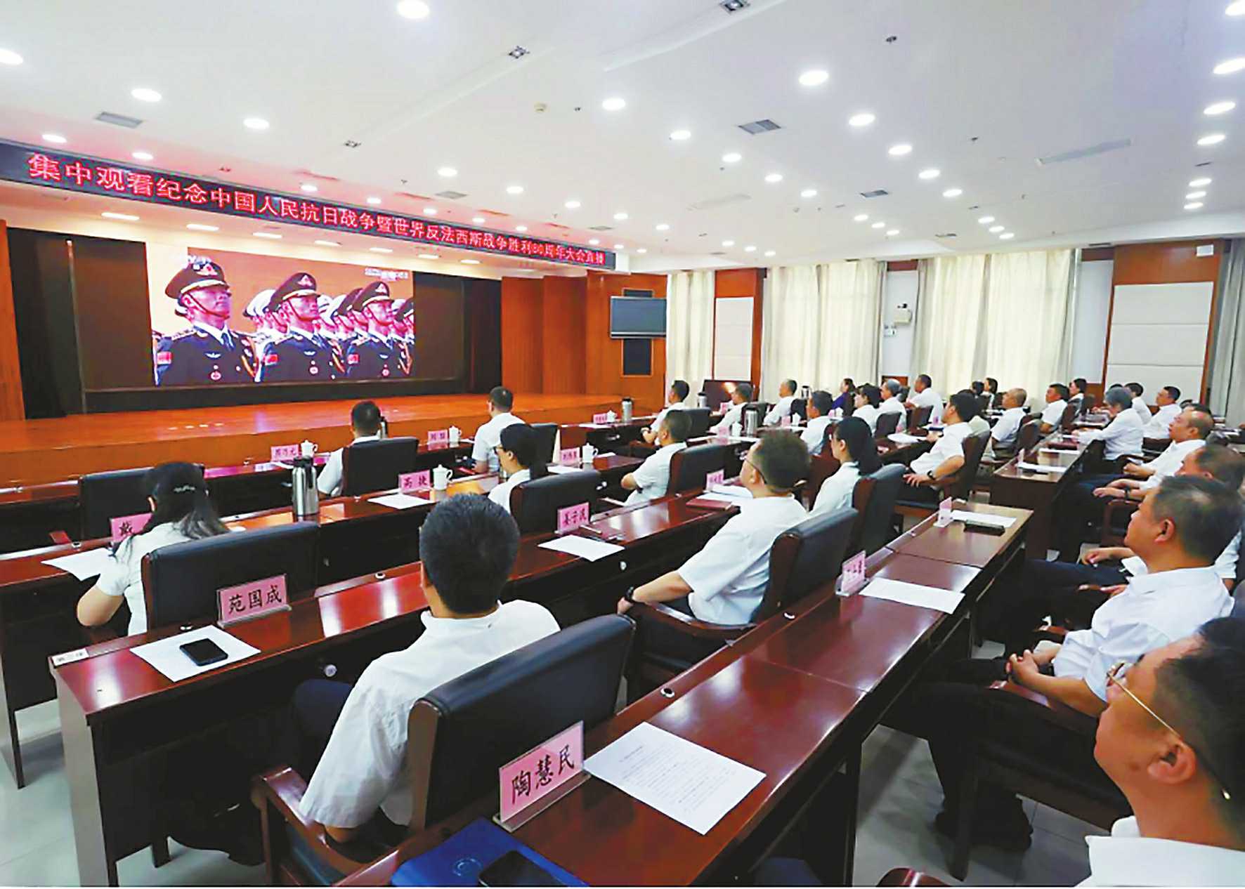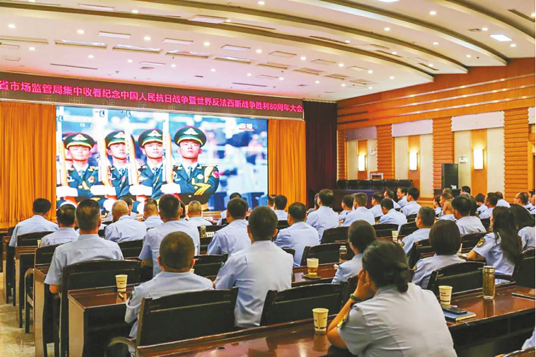 9月3日上午,纪念中国人民抗日战争暨世界反法西斯战争胜利80周年大会在北京隆重举行,天安门广场举行盛大阅兵仪式。为振奋民族精神,激发爱国热情,河南省市场监管局组织全体党员干部集中收看现场直播,共同回顾光辉历史,感悟伟大抗战精神。 □张琼文/摄