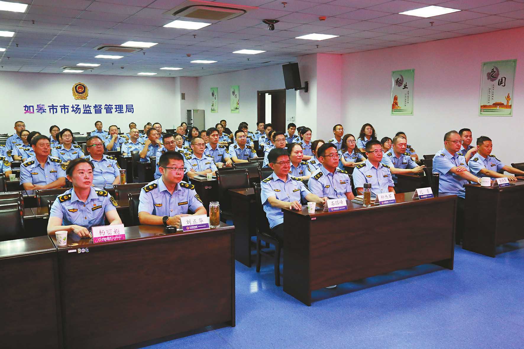 9月3日,江苏省如皋市市场监管局组织机关所有党员干部集中收看纪念中国人民抗日战争暨世界反法西斯战争胜利80周年大会直播。 □储汤枫 崔梦月/摄影报道
