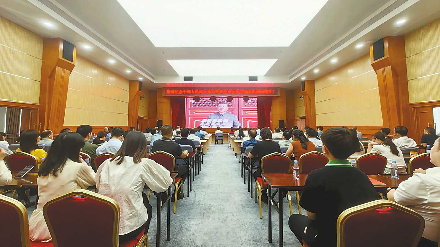 9月3日,湖北省襄阳市市场监管局组织干部职工集中收看纪念中国人民抗日战争暨世界反法西斯战争胜利80周年大会电视直播。 □郭 雪/摄