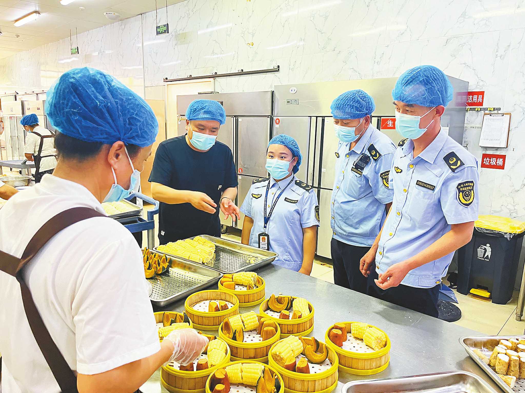 连日来,河北省唐山市曹妃甸区市场监管局聚焦校园食品安全,全面启动专项检查,通过全过程监督守护师生“舌尖上的安全”。图为该局执法人员在一家学校食堂检查食品安全情况。 □刘晔晔/摄