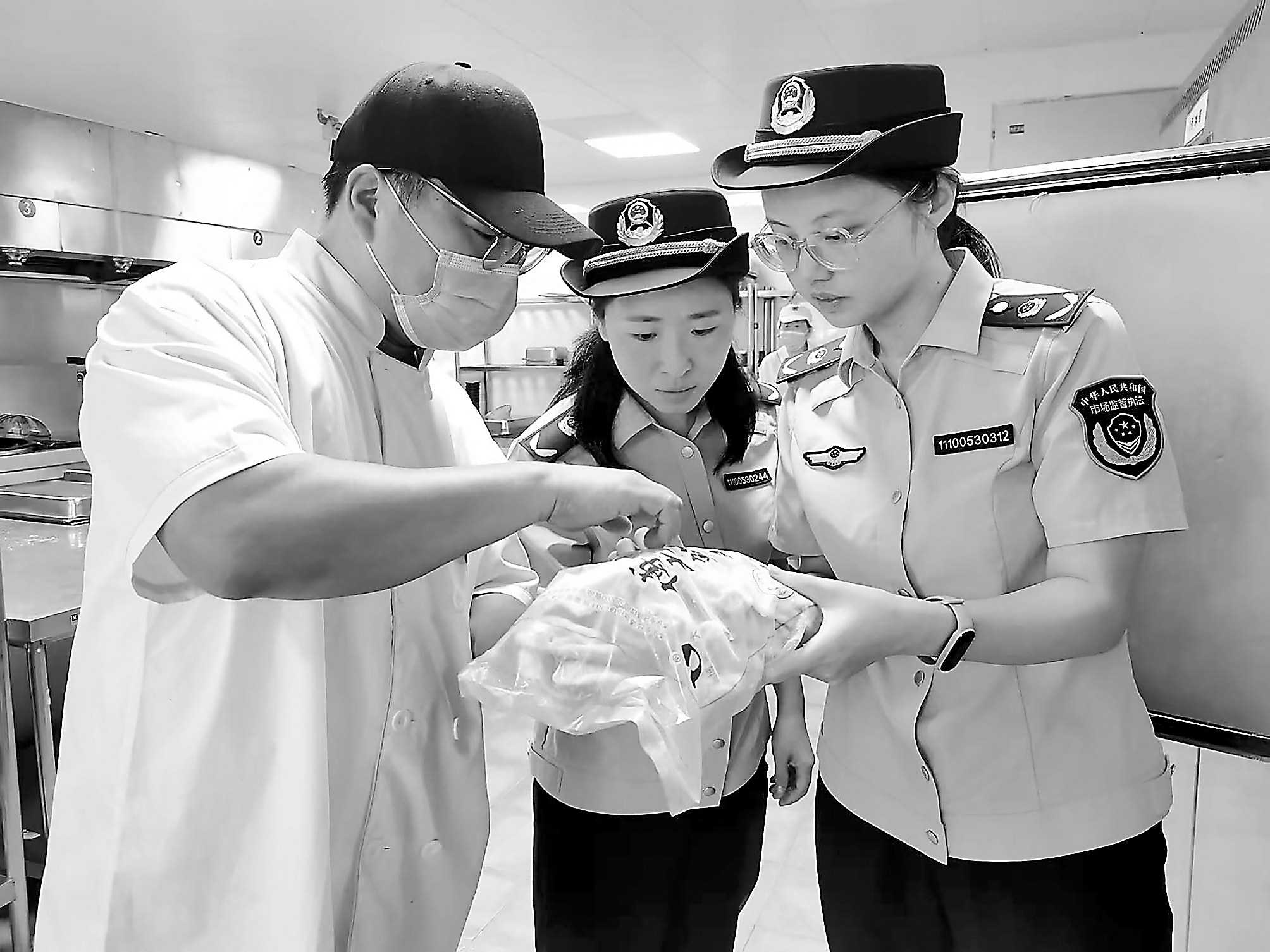 近日,浙江省温岭市市场监管局组织开展校园周边食品安全检查,执法人员来到餐饮店后厨,重点对冰箱内冷冻禽肉的保质期、储存条件、标签标识及采购票据等进行核查,确保食品来源可溯、质量可靠,全力保障师生饮食安全。 □丁施施/摄