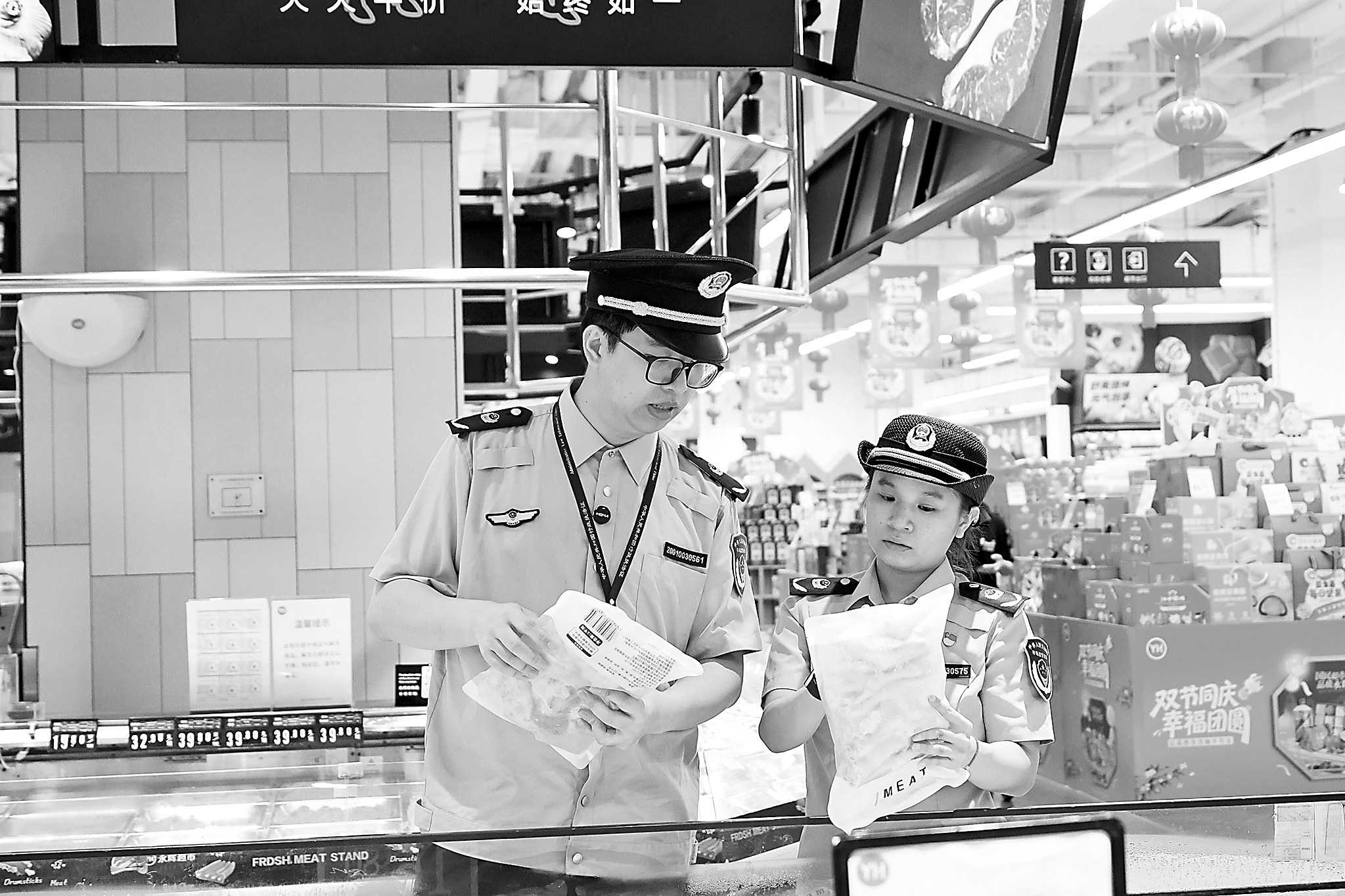 连日来,广西壮族自治区南宁市市场监管局加强食品安全检查和专项监督抽检,为市民营造安全放心的消费环境,全力守护群众“舌尖上的安全”。图为该局执法人员对一家超市销售的食品进行检查。 □何正君/摄