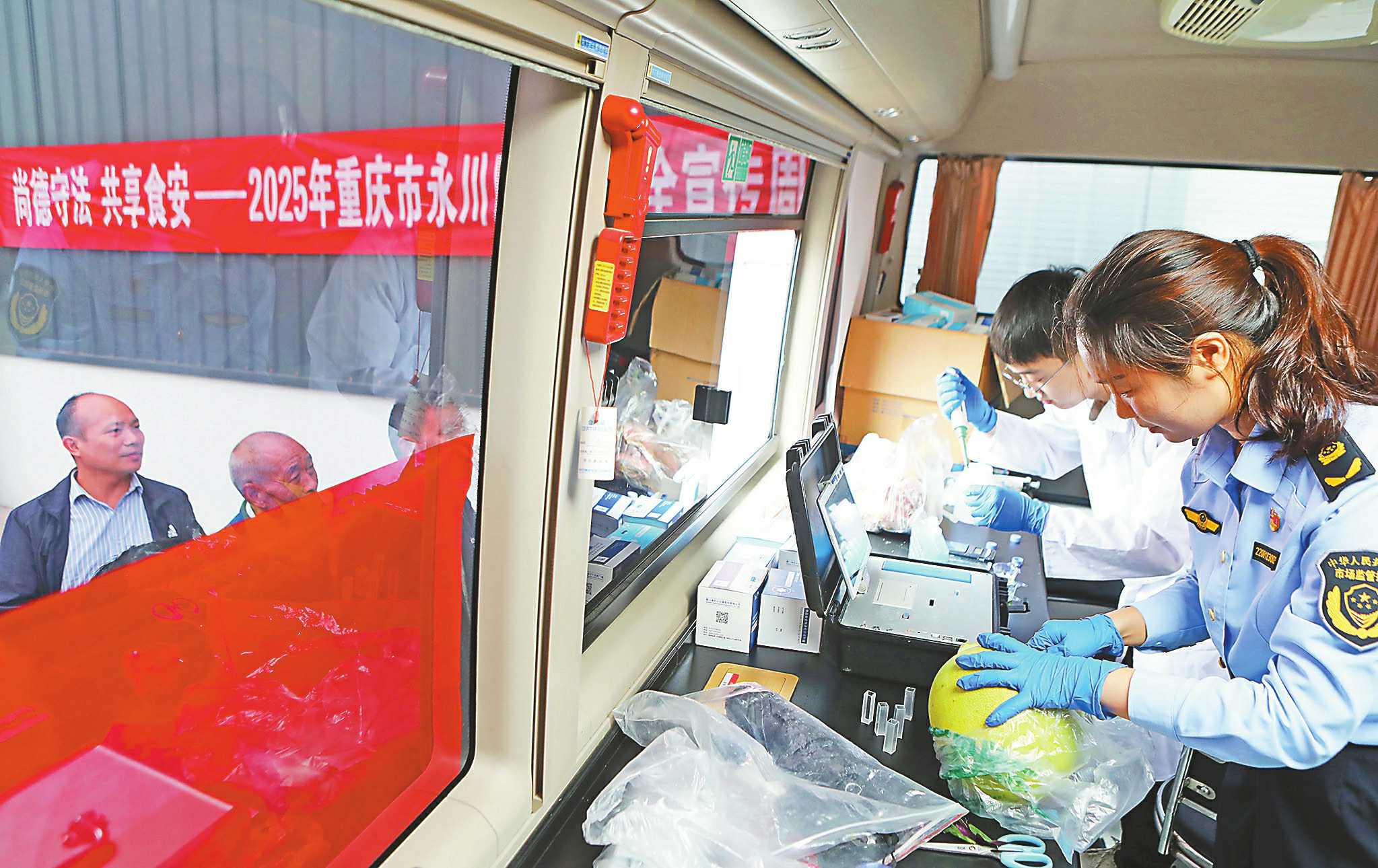 10月15日,重庆市永川区市场监管局食品快检车开进位于吉安镇的重庆永泸强村农业开发有限公司,开展“你点我检 服务惠民生”活动。检测现场,工作人员主动收集群众提出的食品检测需求,对群众送检的蔬菜、肉类、豆制品等样品快速检测,实时反馈结果,让群众“吃得放心、看得明白”。 □陈仕川/摄