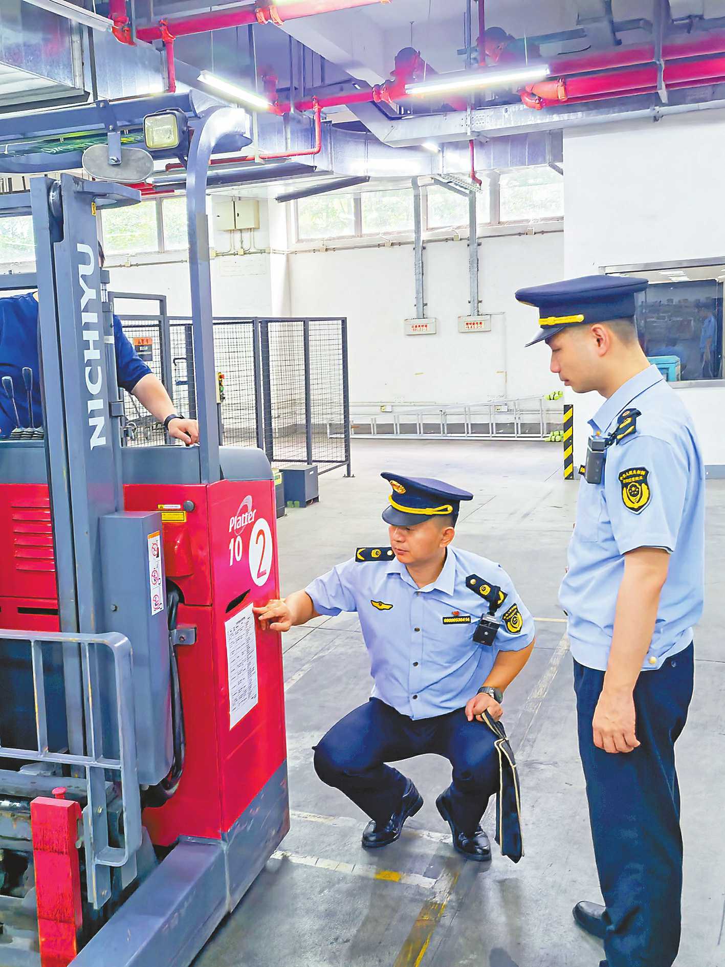 近日,上海市长宁区市场监管局临空市场监管所对辖区特种设备开展“双随机、一公开”检查,检查结果在国家企业信用信息公示系统公示。 □蒋呜悦/摄