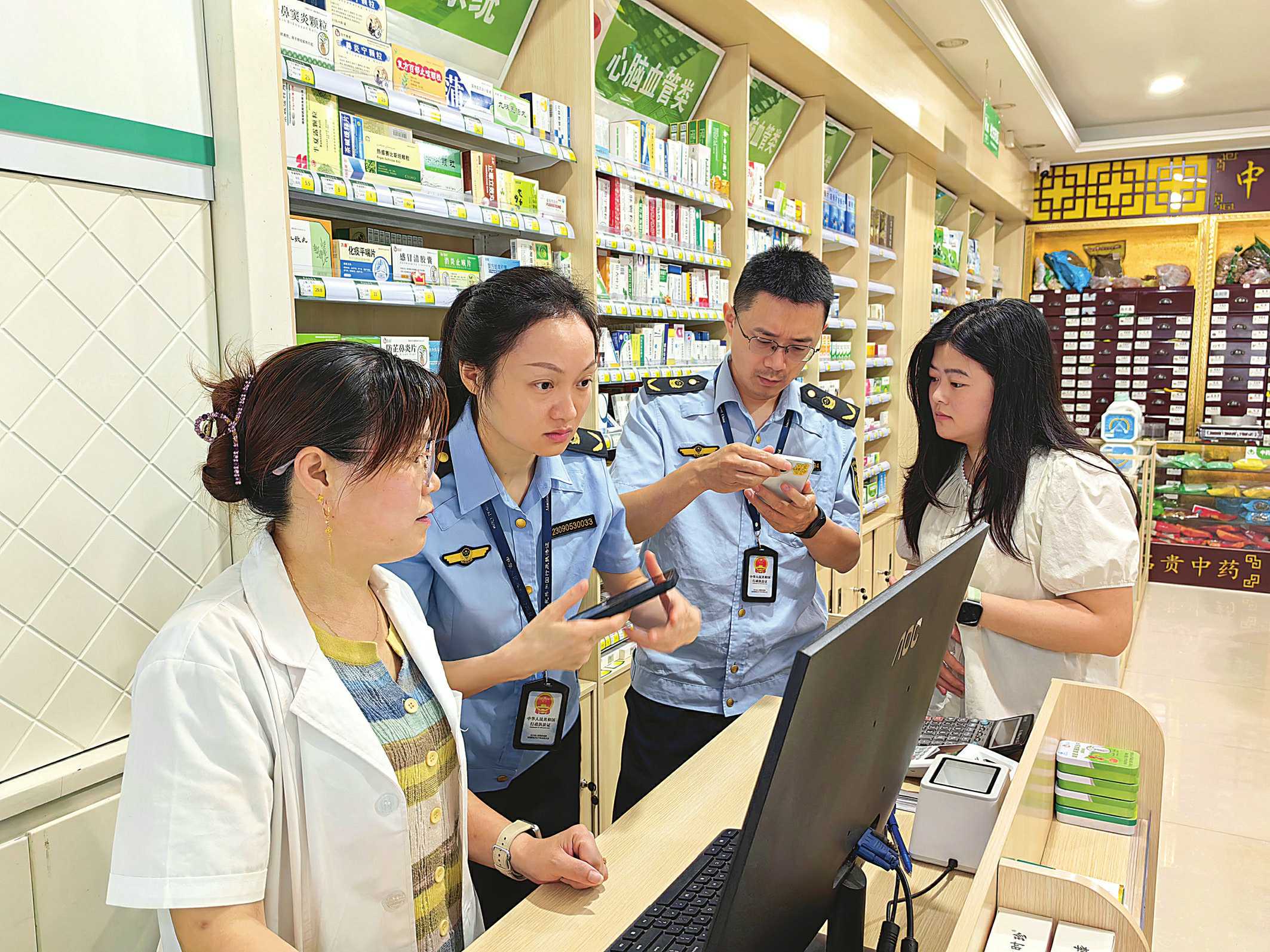 九月中旬以来,四川省威远县市场监管局聚焦执业药师“挂证”问题开展专项核查整治行动,进一步净化药品零售市场环境。截至目前,该局已核查药店四十家,对两家涉嫌存在执业药师“挂证”问题的药店立案调查。图为执法人员日前在药品零售企业进行核查。 □王剑锋/摄