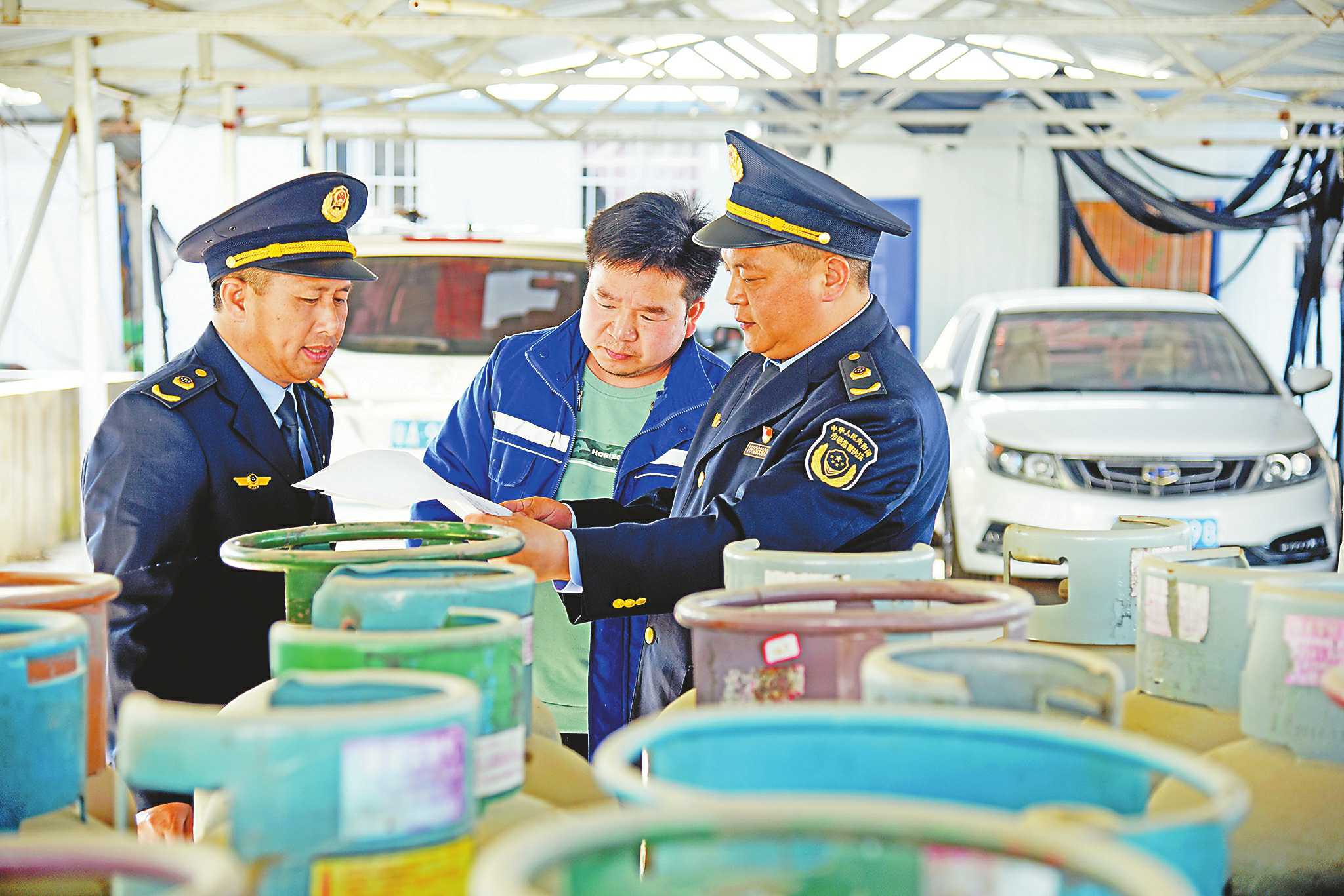 连日来,河南省开封市市场监管局开展特种设备专项检查。针对检查中发现的安全隐患,该局分类建立台账,实行“清单式”管理,督促指导相关单位认真整改。图为十月二十七日,执法人员检查承压类特种设备管理台账。 □韩吴琦/摄
