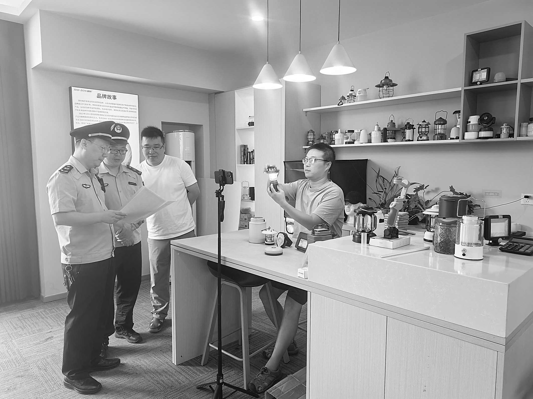 “双十一”前夕,浙江省宁波市宁海县市场监管局执法人员聚焦网络直播营销活动,走进辖区照明生产企业直播基地,对直播话术、产品参数展示等进行现场指导,确保直播宣传真实合规,守护消费者权益。 □尚微微/摄