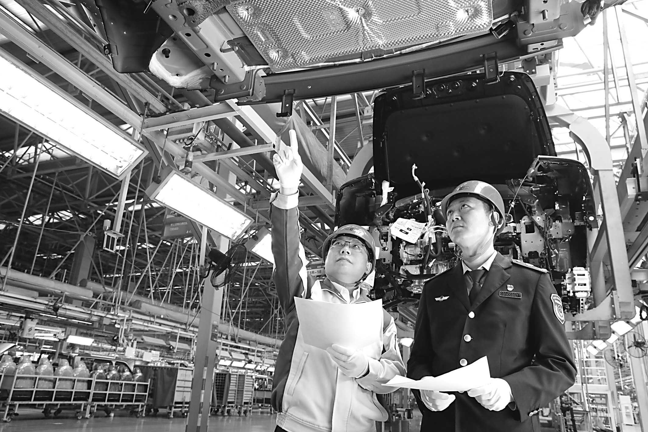 为深入贯彻落实质量强市战略,助力企业提质增效,河北省保定市市场监管局持续深化入企帮扶活动,将先进质量管理理念和方法送至车间,赋能企业高质量发展。图为该局质量发展科负责人日前来到长城汽车股份有限公司生产一线,为企业质量管理“把脉问诊”。 □黄汇雨/摄