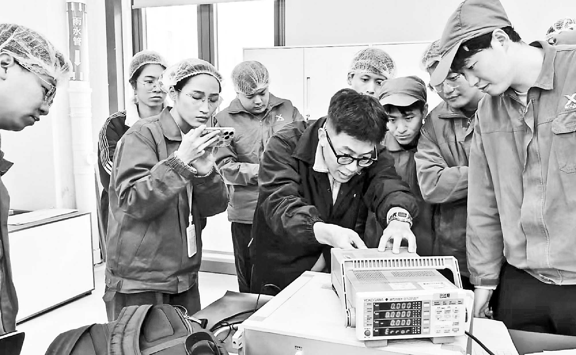 培训期间,省质科院专家系统讲解测量管理体系运行中的常见问题与解决方案,深入企业生产车间计量室,现场演示PV源、DC源、功率计等关键设备的校准流程,指导技术人员开展设备调试、参数优化与日常自校操作。艾罗能源产品质量经理表示,此次培训有效解决了企业在设备维护与溯源过程中的技术难点,为产能提升提供了有力支撑。。
