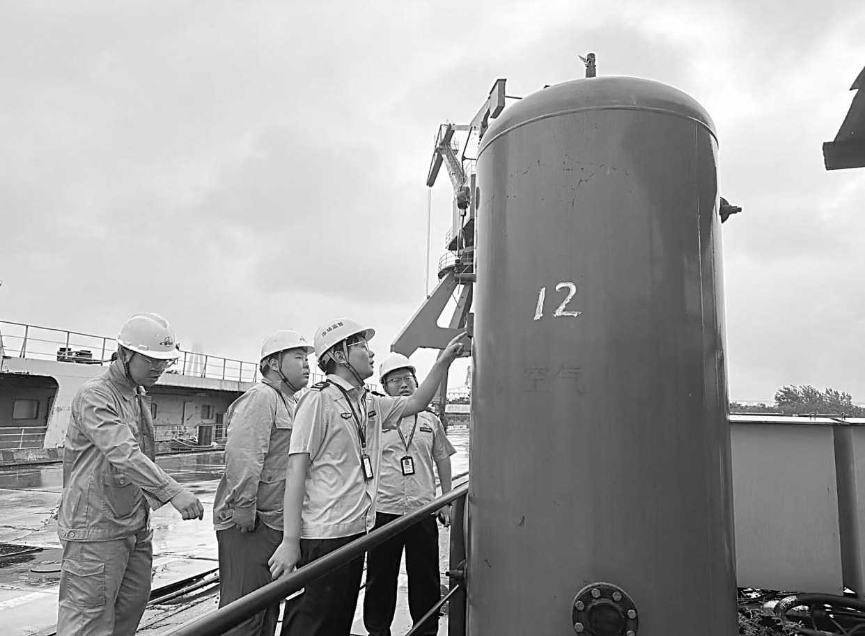 江苏省泰兴市市场监管局虹桥分局近期开展船舶修造企业特种设备隐患排查治理,对压力容器的运行状态、维护保养记录及安全阀、压力表等附件的校验情况进行严格核查,确保该类企业的特种设备均依法办理使用登记手续、定期检验报告有效、安全附件定期校验无误。 □何 翔/摄