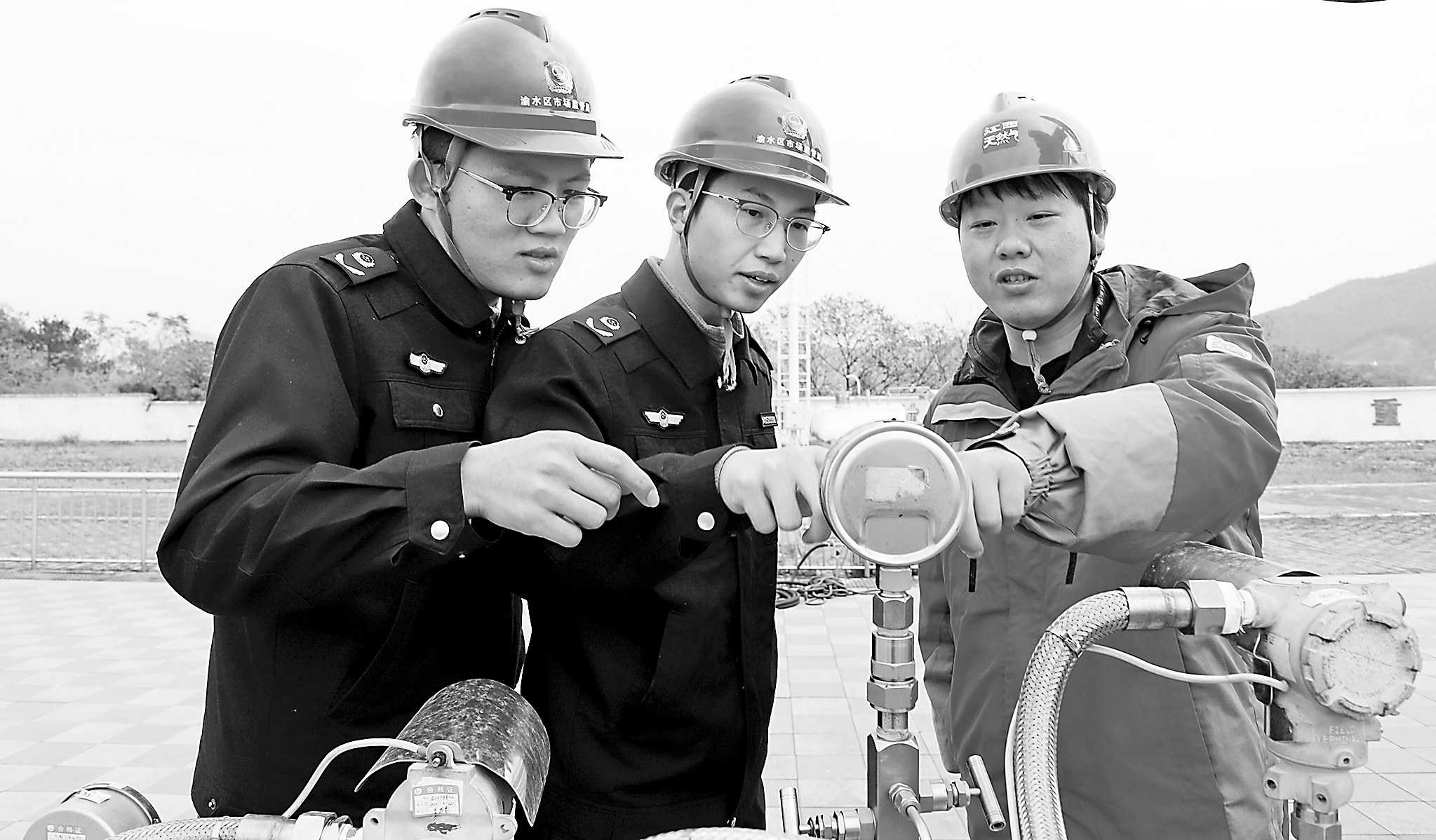 连日来,江西省新余市渝水区市场监管局对辖区天然气分输(充装)站开展监督检查,重点检查充装许可证是否在有效期内、是否超范围充装、管理人员和作业人员持证情况及安全管理制度落实情况等。图为12月8日,该局执法人员对一家天然气分输站的安全阀进行检查。 □廖海金/摄