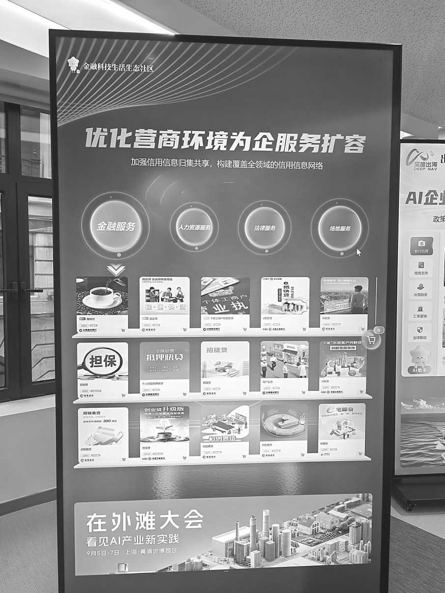 右图:上海市企业办事人可以通过操作办事大厅的电子触摸屏,点击金融、法律、人力资源等所需办理项目,形成服务“菜单”,实现“点单式”服务。