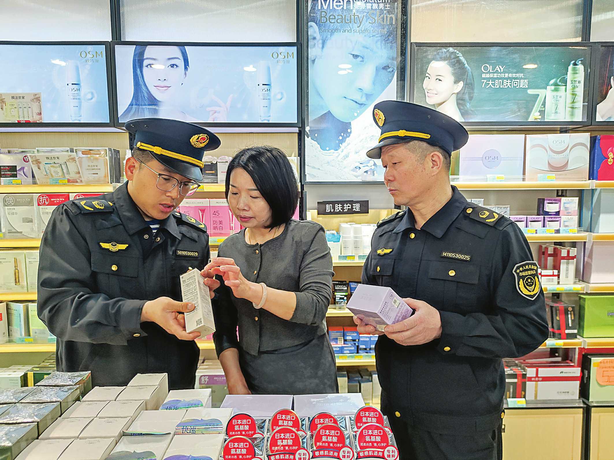 12月18日,江西省南丰县市场监管局执法人员深入辖区化妆品专卖店,以润肤霜、护手霜、润唇膏为重点,认真检查化妆品进货台账、执行标准、标签标识、产品宣传等情况,严厉查处销售假冒伪劣商品、虚假宣传等违法行为,守护消费者用妆安全。 □鄢国卿/摄