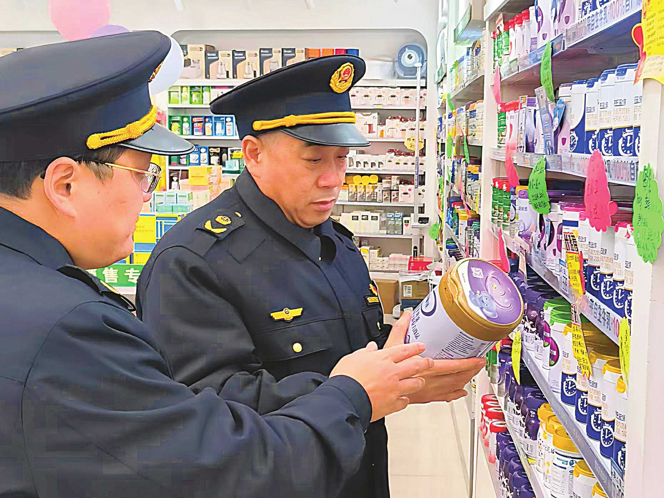 1月9日,山东省泰安市宁阳县市场监管局执法人员深入辖区母婴店、商超等经营场所,开展婴幼儿配方乳粉质量专项检查。图为执法人员在一经营场所进行检查。 □何敬华 任德文/摄影报道