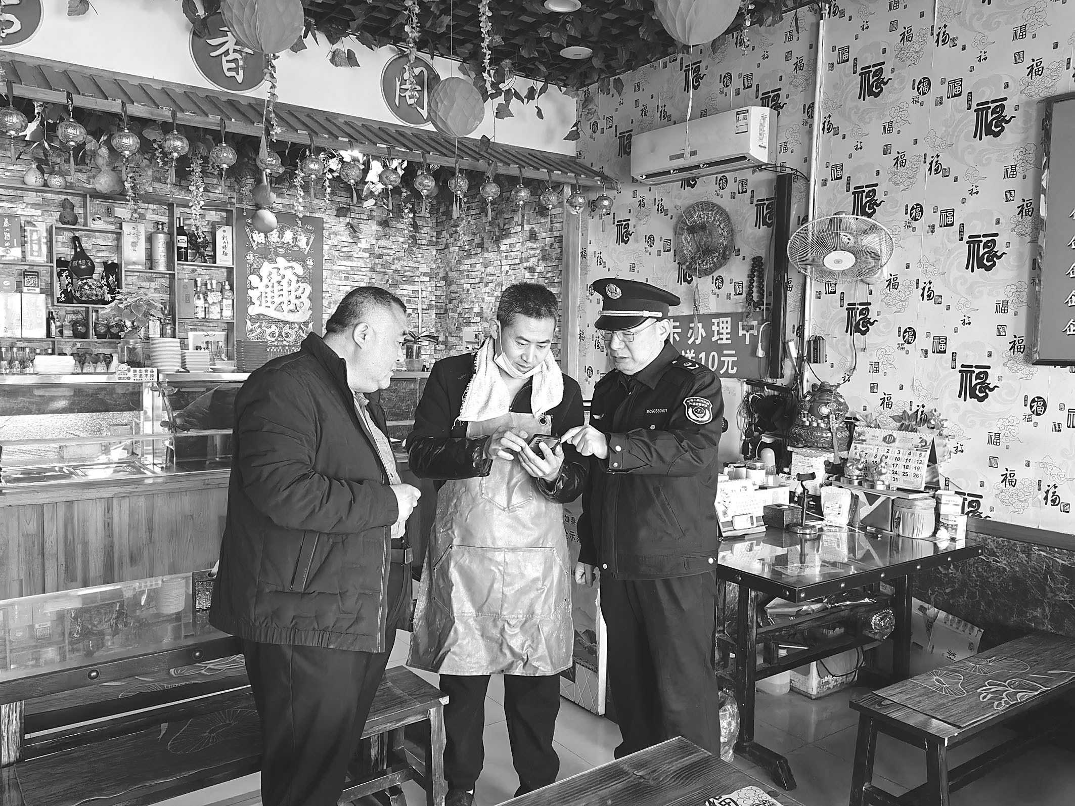 1月13日,山东省宁阳县市场监管局深入辖区餐饮经营单位开展餐饮服务行业规范指导。该局执法人员针对部分商户存在的台账记录不完整、消毒流程不规范等问题,现场手把手指导,向经营者讲解食品安全相关法律法规要求,并发放食品安全宣传手册。图为该局执法人员在一家餐饮店检查食品原料采购索证索票、餐具消毒记录、从业人员健康证持有等情况。 □何敬华 韩广志/摄影报道