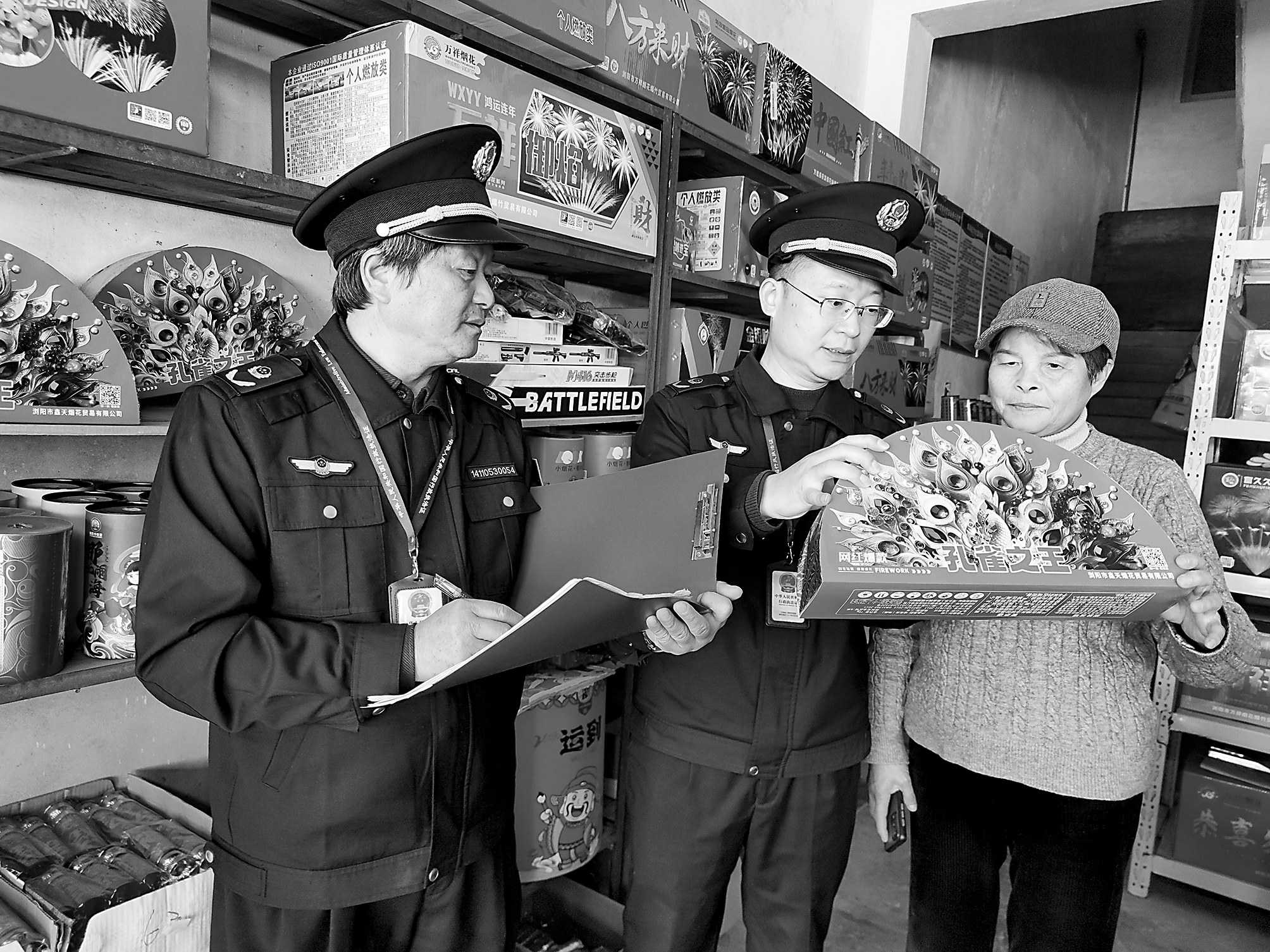 春节将至,为确保群众安全过节,江西省南丰县市场监管局组织开展烟花爆竹产品质量安全专项检查。执法人员深入辖区商场超市以及烟花爆竹零售点,重点检查在售烟花爆竹进货渠道、执行标准、产品合格证明、储存条件等情况,严厉查处销售“三无”、假冒伪劣烟花爆竹等违法违规行为。图为1月22日,该局执法人员在一家烟花爆竹零售点检查产品标准执行情况。 □鄢国卿/摄