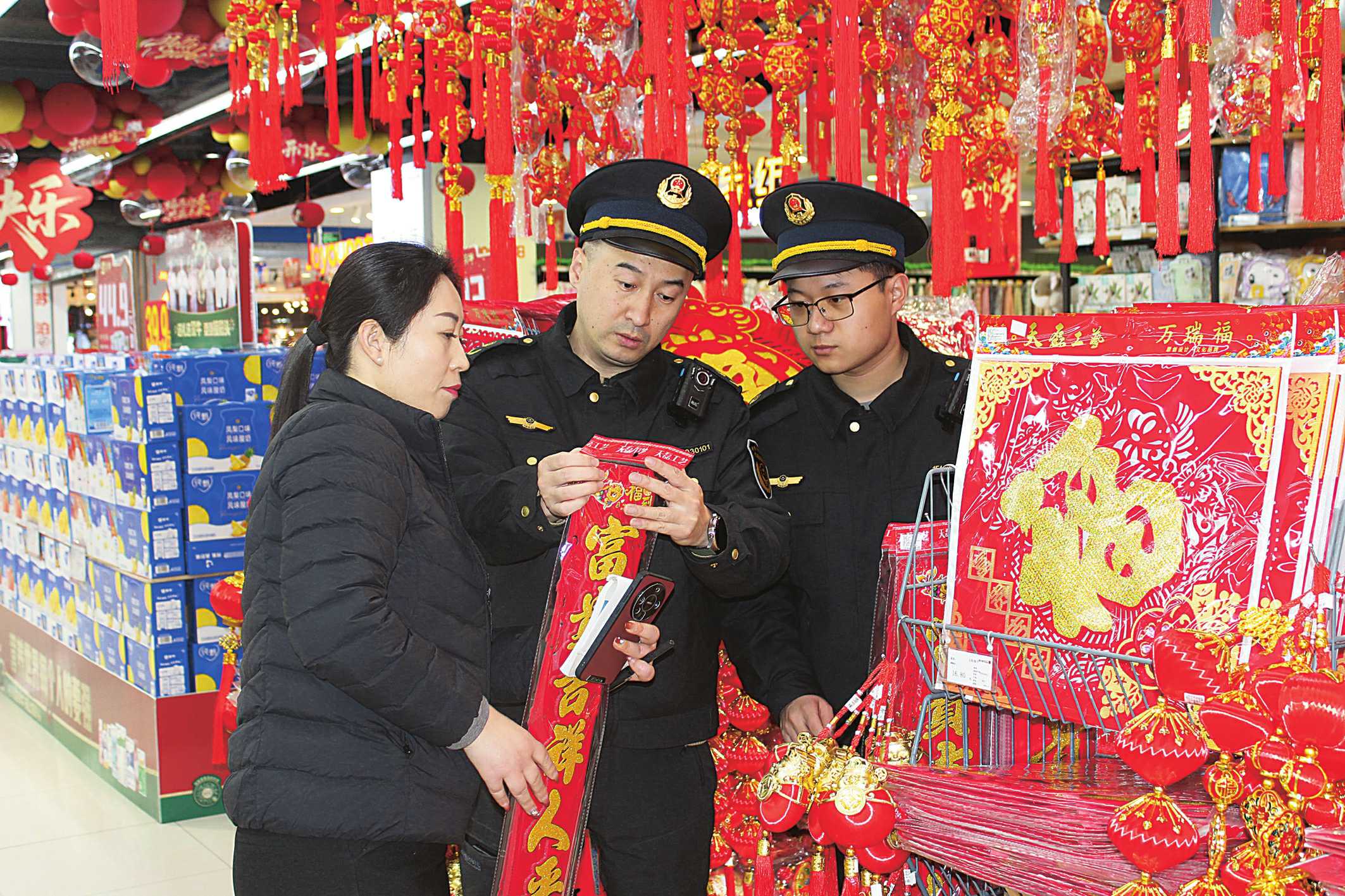 为维护节日市场价格秩序,保障消费者合法权益,山东省聊城市市场监管局近日对大型商超、景区及周边餐饮住宿经营场所等开展检查,重点查处未按规定明码标价、价格欺诈等违法行为。图为1月29日,该局执法人员在一家超市检查节日用品明码标价情况。 □田明奇/摄