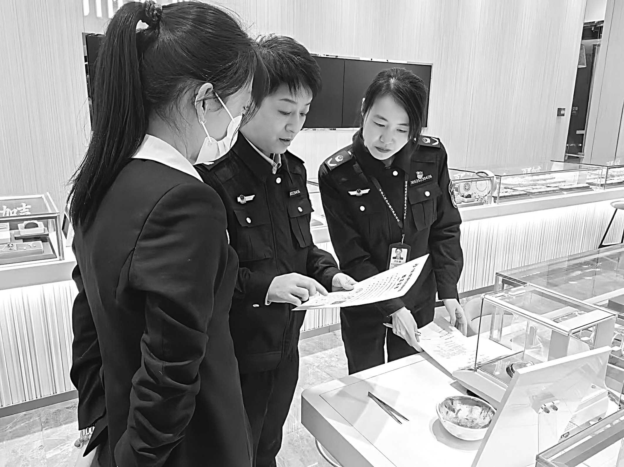 辞旧迎新之际,黄金消费与回收市场日益活跃。宁夏回族自治区银川市市场监管局金凤区分局近期组织开展黄金饰品领域计量器具专项监督检查行动,执法人员坚持监管与宣教相结合,现场向经营者详细解读《中华人民共和国计量法》《零售商品称重计量监督管理办法》等法律法规,督促其严格落实计量管理主体责任。 □本报记者 李志强 通讯员 孙 磊 罗 洁/摄影报道