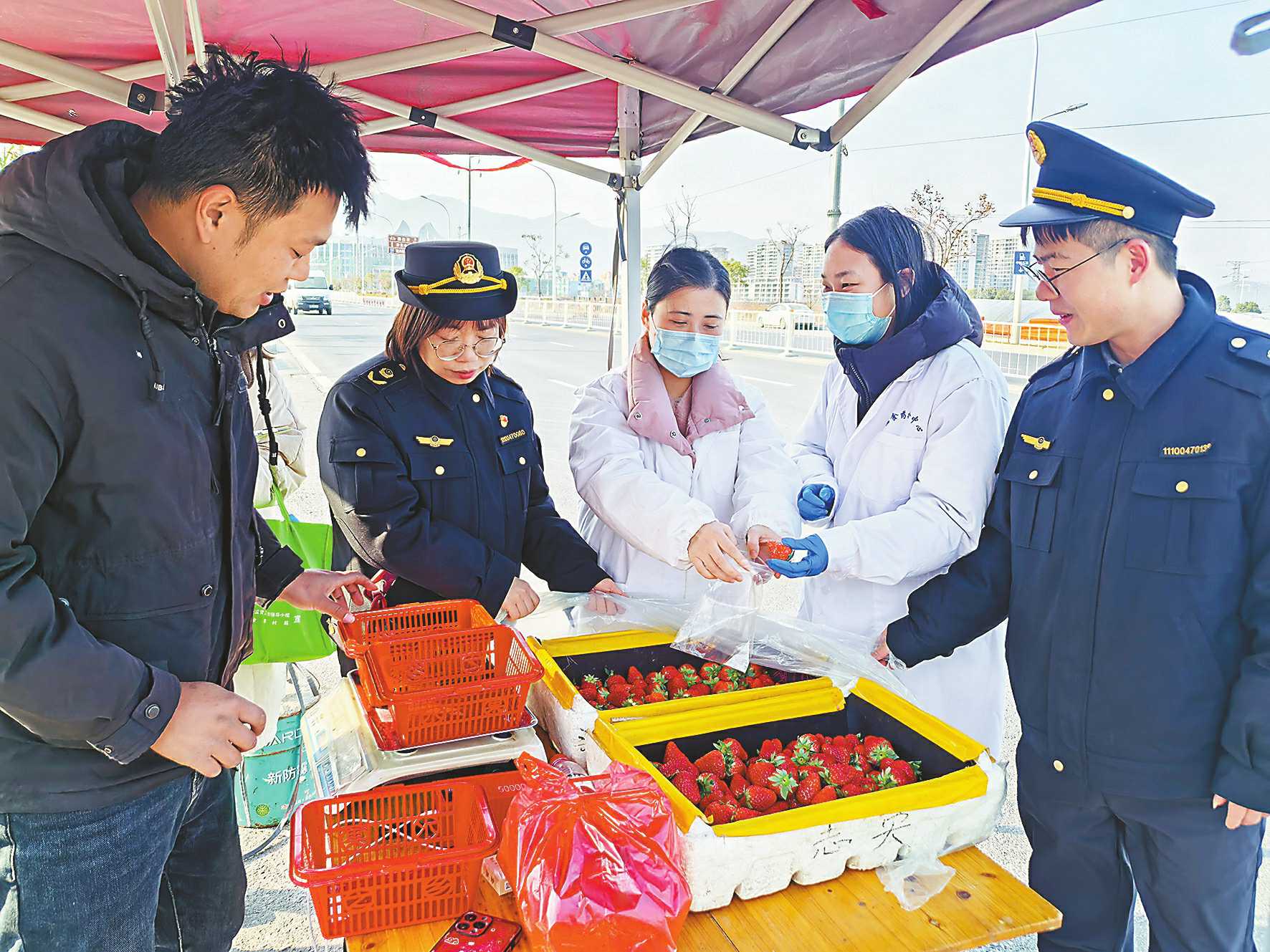 聚焦机制链,智慧监管筑牢源头防线。台州市以农批市场为枢纽,推动监管流程再造。智能对接跑出数据速度,在农港城创新应用“智能称重管理系统”,实现入场农产品信息自动采集并实时推送至“浙食链”,赋予每批产品“数字身份证”。技术赋能提升筛查精度,将胶体金快检技术纳入民生实事,全年完成胶体金检测超6万批次,农贸市场覆盖率达100%,形成“智能准入+精准快检”双重防火墙。保险兜底拓展共治路径,开出农批市场首张问题食品食责险保单,探索“行政监管+市场机制”风险分担新路径。