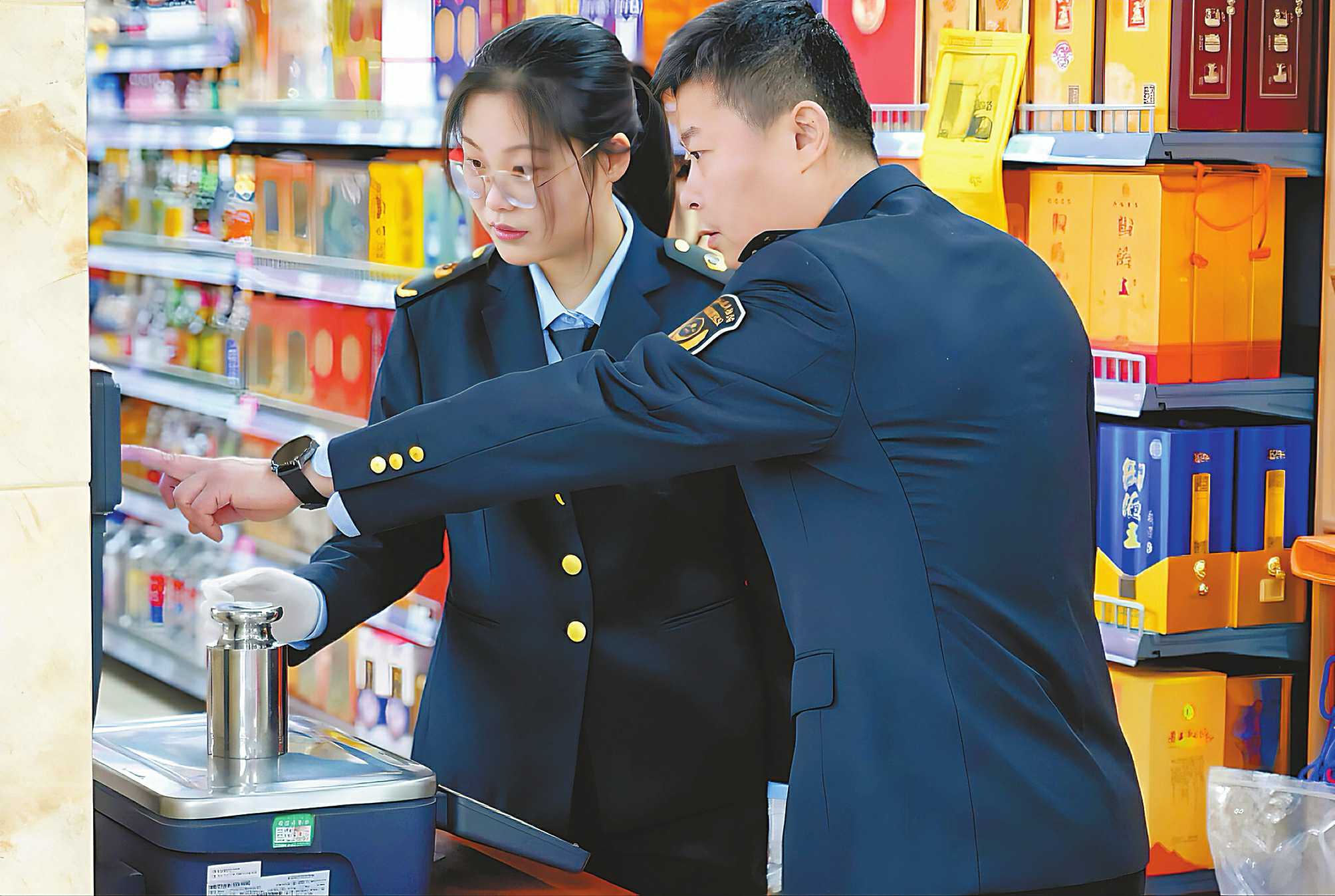 近日,山东省肥城市市场监管局聚焦民生计量,深入商超开展计量器具专项检查。执法人员通过标准砝码现场校准电子计价秤,严把市场计量关,全力维护消费者合法权益。 □张晓明/摄