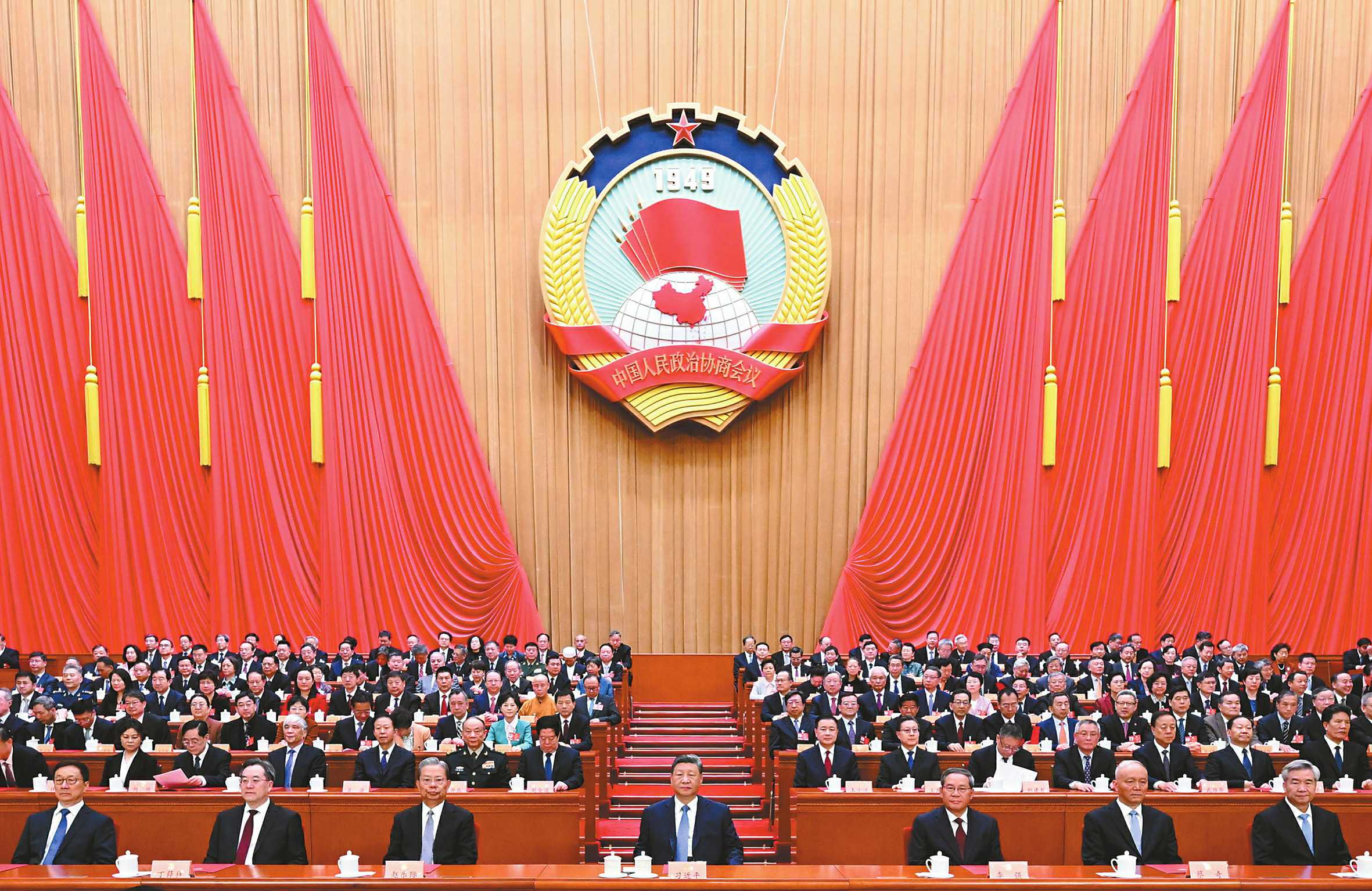 3月11日上午,中国人民政治协商会议第十四届全国委员会第四次会议在北京人民大会堂闭幕。全国政协主席王沪宁主持闭幕会并讲话。 □新华社记者 黄敬文/摄