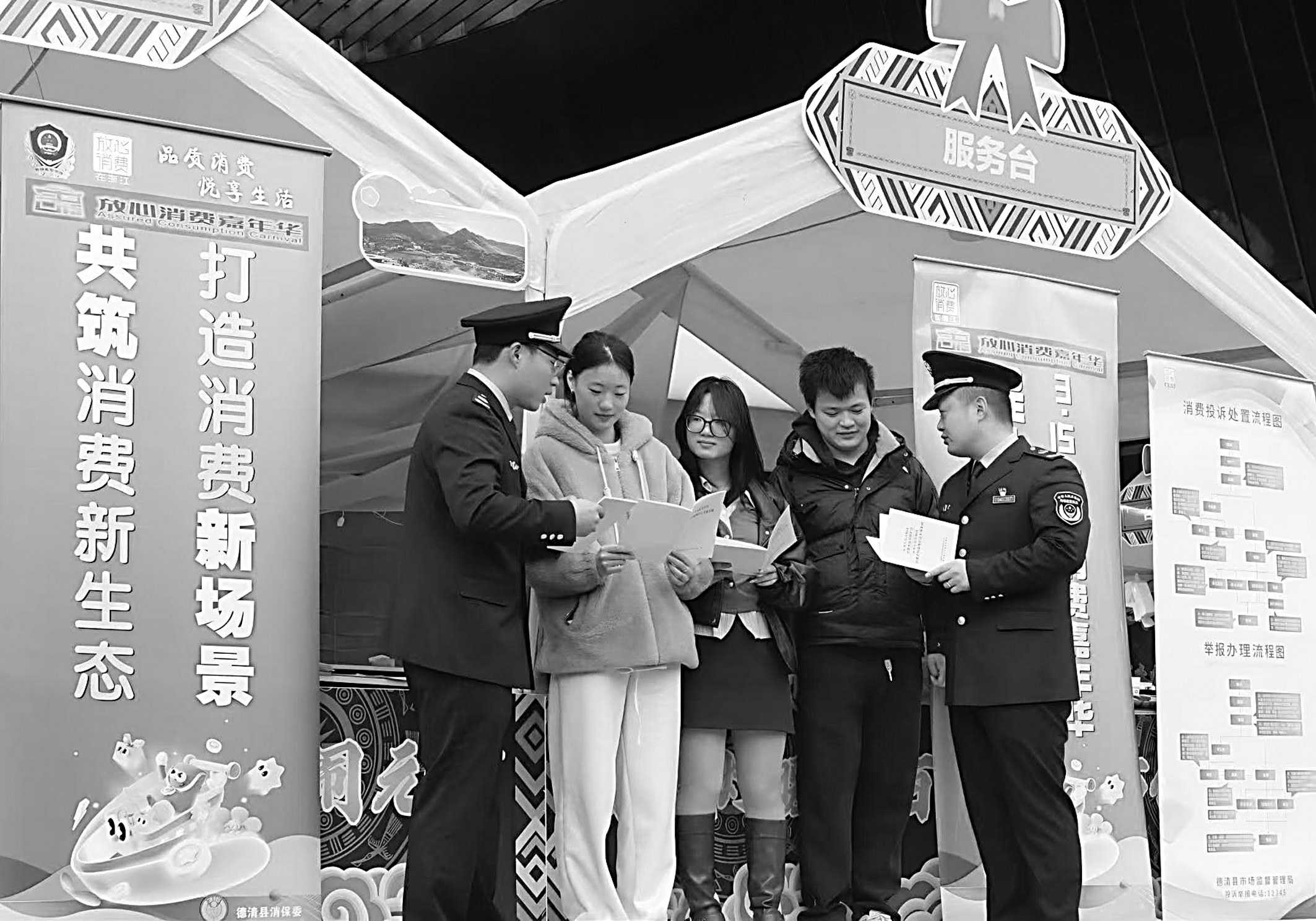 近日,浙江省德清县市场监管局工作人员走进德清“康城灯暖・百味归心苗侗闹元宵”市集,开展消费维权宣传服务活动。活动现场,执法人员向商户和市民发放宣传手册,面对面普及消费维权知识。 □费振鸿 徐水才/摄影报道
