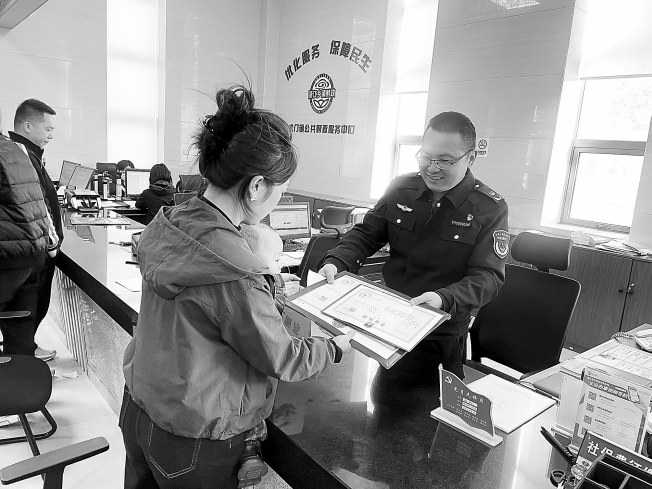▲党员先锋岗向水产经营户发放证照。