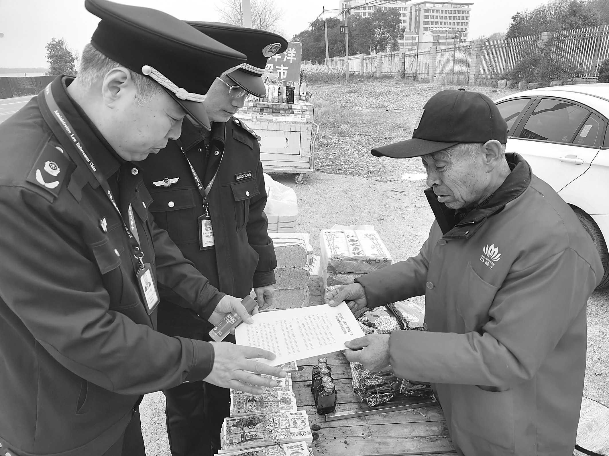 清明节临近,安徽省滁州市各级市场监管部门纷纷行动,提前开展祭祀用品市场监管。3月22日上午,滁州市市场监管局执法稽查科、综合行政执法支队到街头巷尾及祭祀经营场所,开展清明祭祀用品市场突击检查和宣传,向祭祀用品经营户发放告知书和倡议书,共创文明、环保、健康的传统节日氛围。 □徐以成 戴正芳/摄影报道