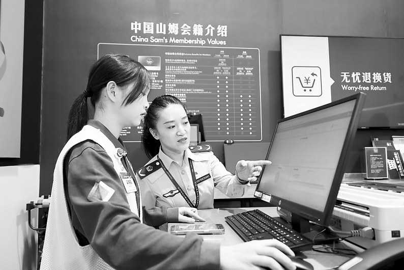 执法人员指导南宁山姆会员店工作人员开展ODR业务。