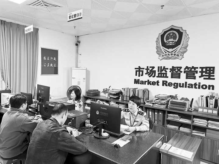 工作人员为群众办理相关登记业务。