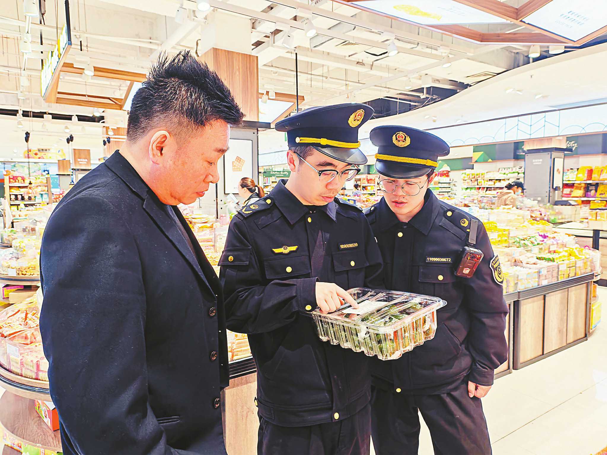 近日,浙江省舟山市市场监管局六横分局在商超开展清明节令食品检查,严厉打击销售过期、变质、“三无”及假冒伪劣食品等违法行为。 □李日成/摄