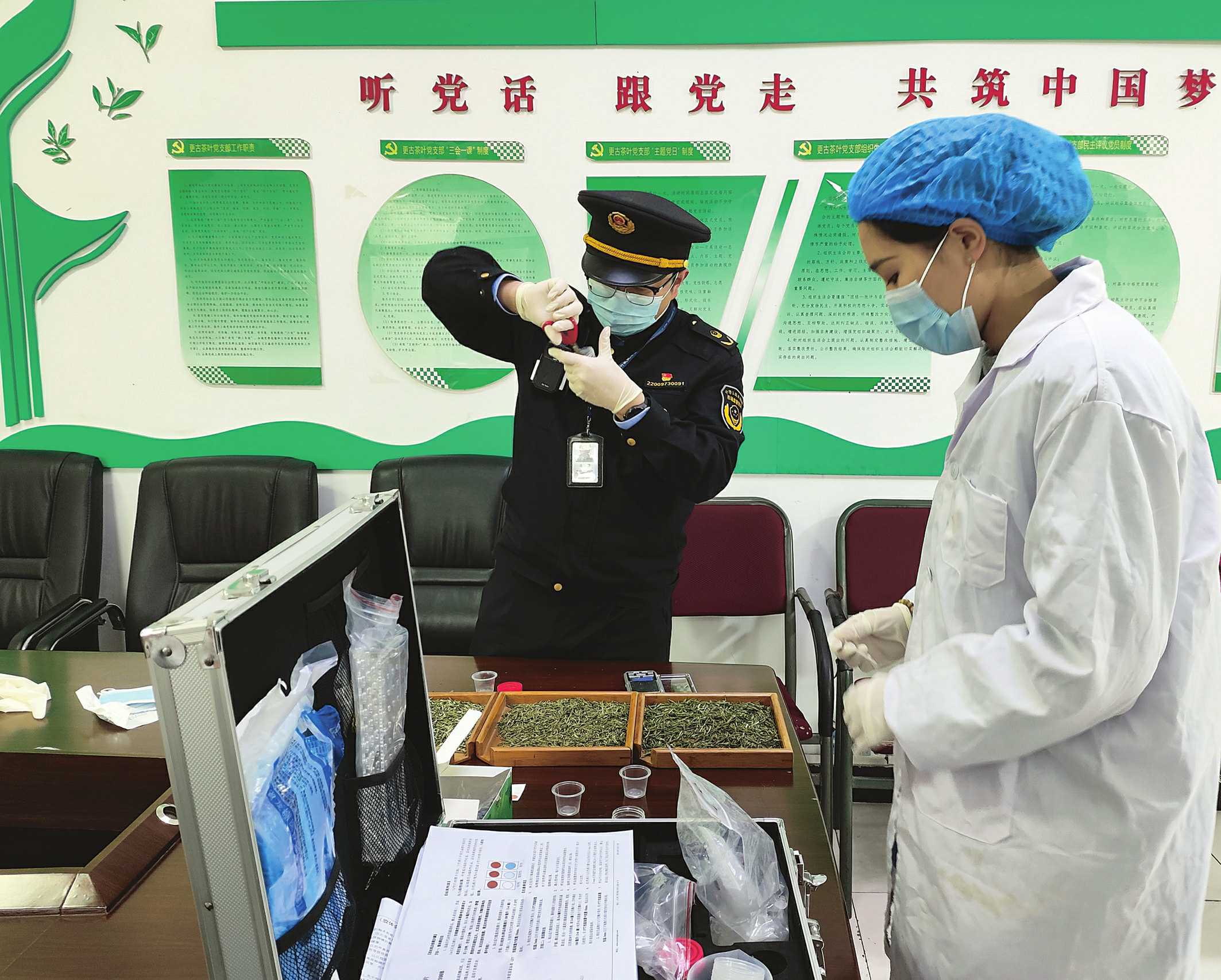 为筑牢春茶上市食品安全防线,近日,重庆市万盛经开区市场监管局执法人员到茶叶生产一线,对新鲜茶叶、半成品及成品茶叶开展快速检测,重点检测农药残留等安全性指标。 □张雪娅/摄
